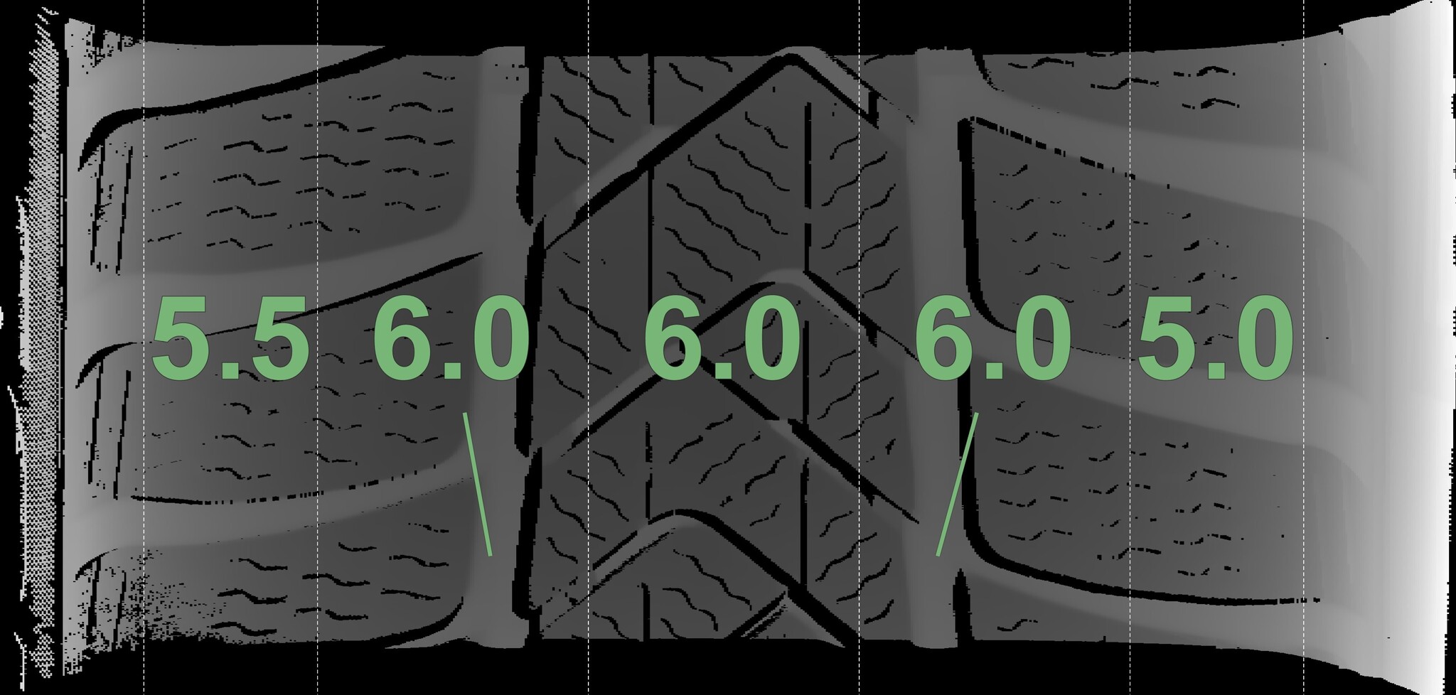 Condition | Profile depth | DOT | Front Left | Used | 5.5 mm | 4718 |