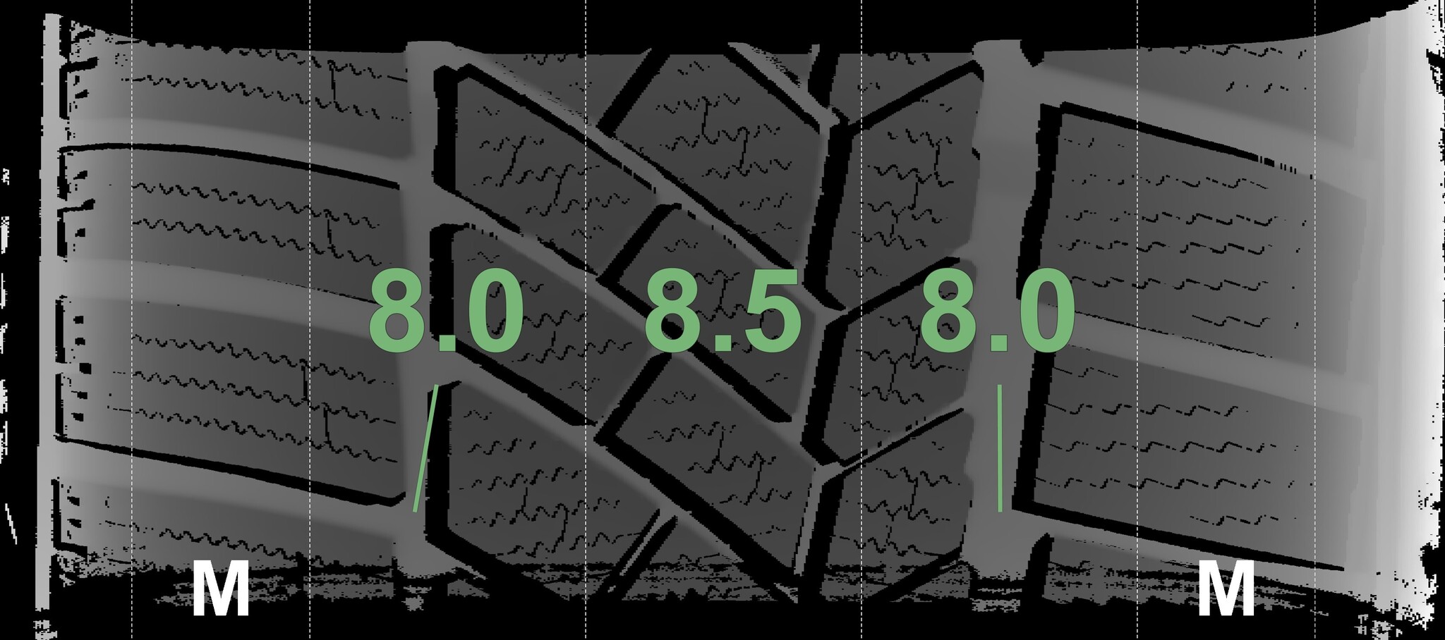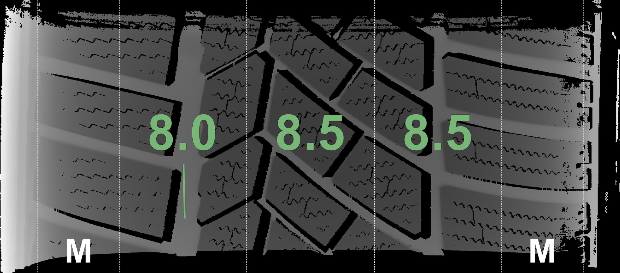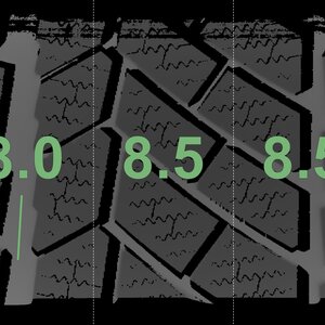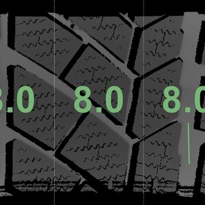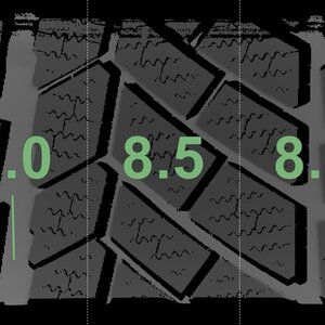 The measured tread depths and the details of the rims are shown above.