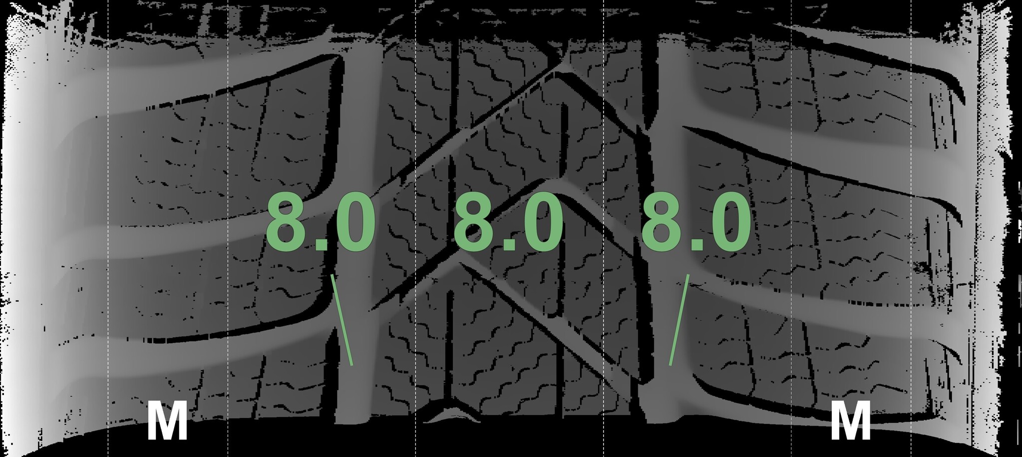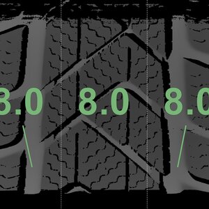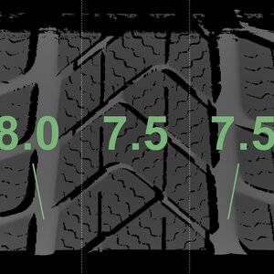 The measured tread depths and the details of the rims are shown above.