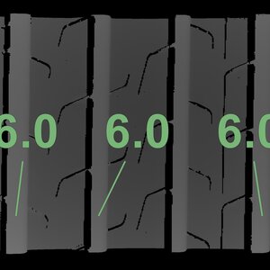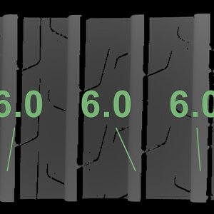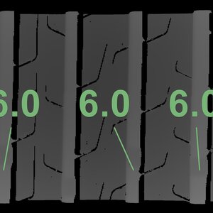The measured tread depths and the details of the rims are shown above.