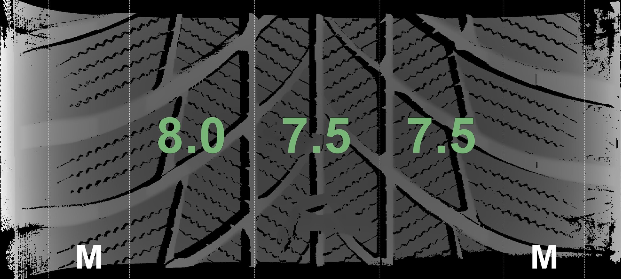 | Condition | Profile depth | DOT | Front Left | New | 7.5 mm | 3420 |