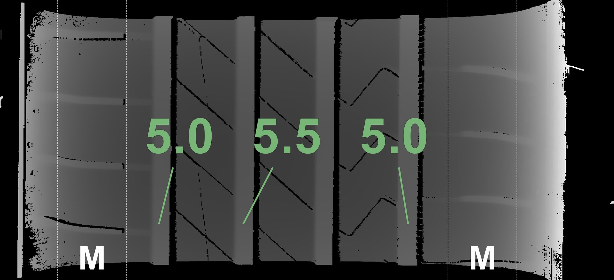 Condition | Profile depth | DOT | Front Left | Used | 5.0 mm | 0723 |