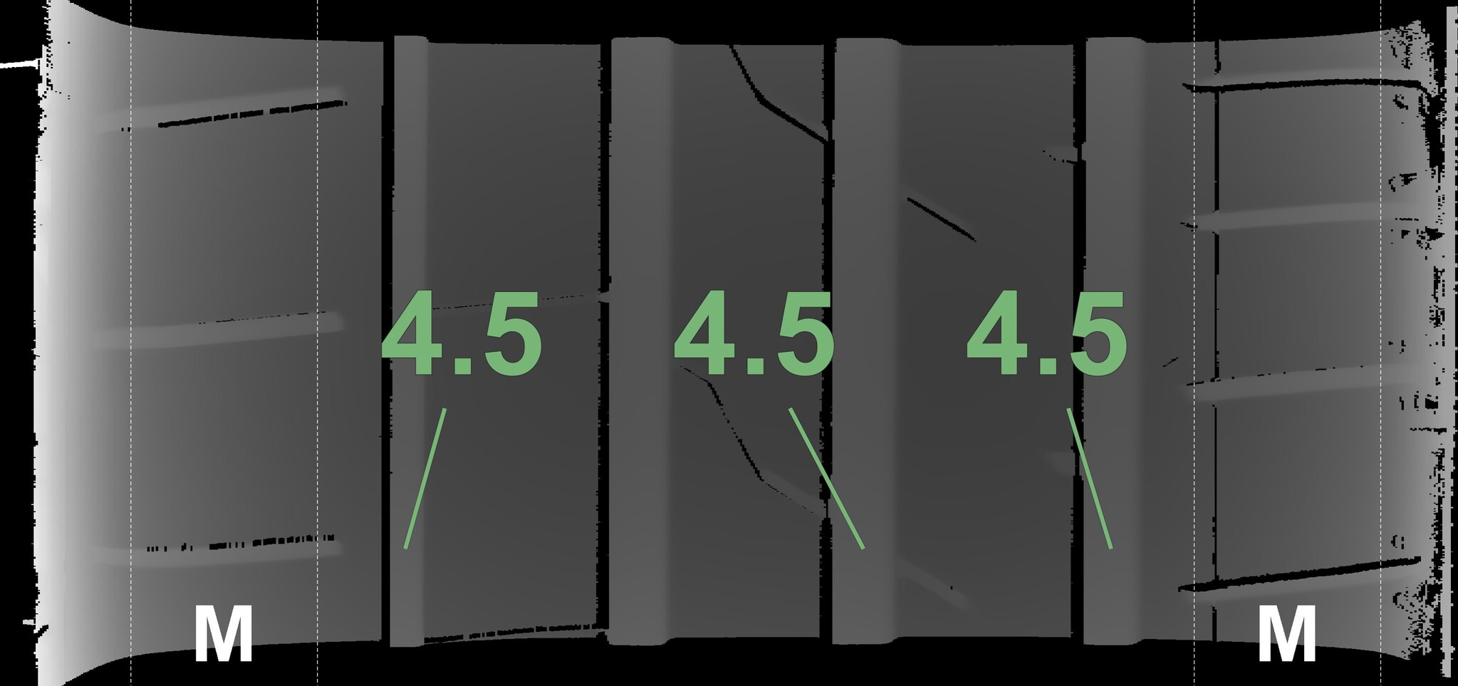 | Condition | Profile depth | DOT | Front Right | Used | 5.0 mm | 4524 |