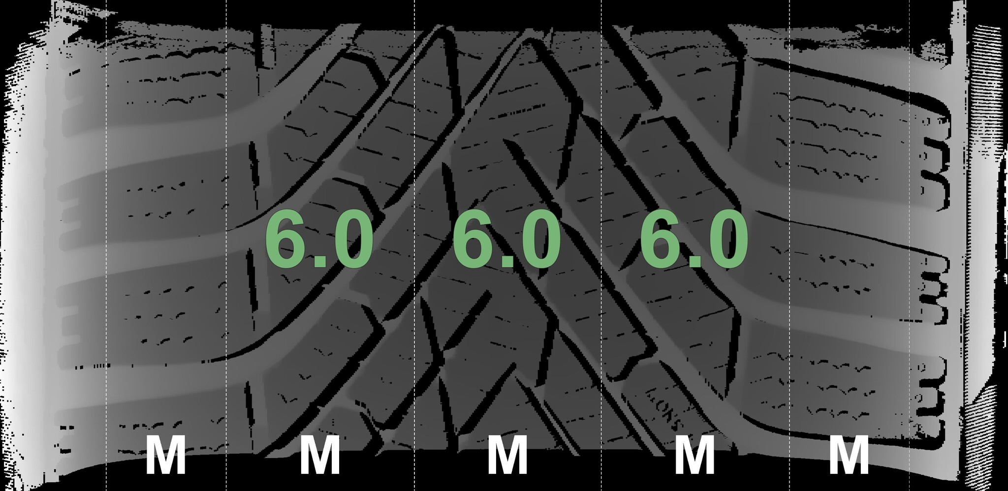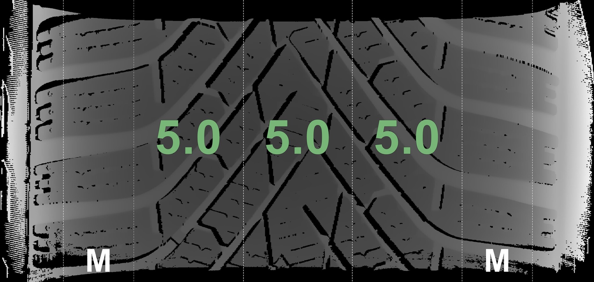 The measured tread depths and the details of the rims are shown above.