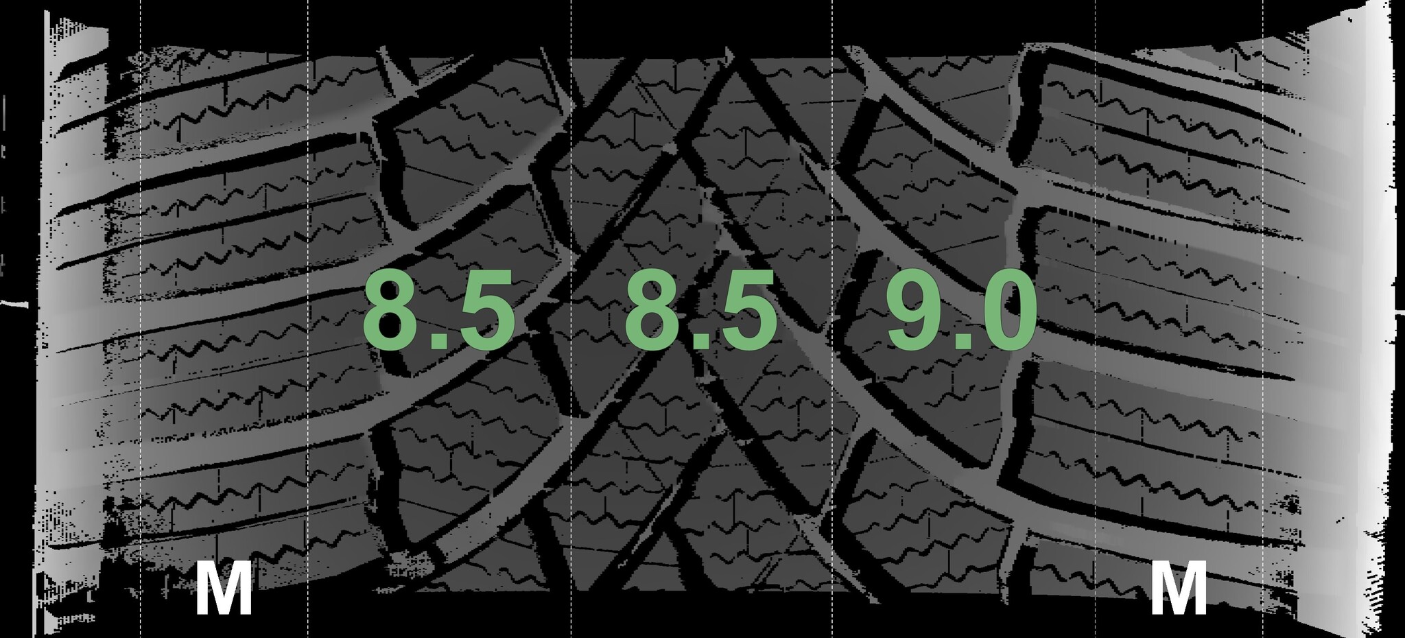 | Condition | Profile depth | DOT | Rear Left | New | 8.5 mm | 2725 |