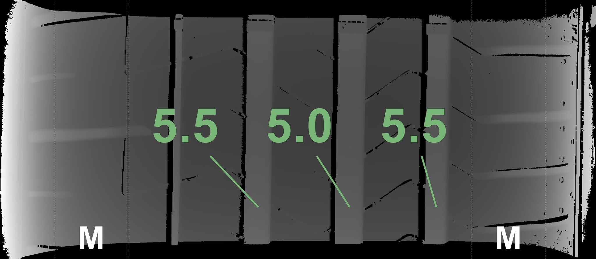 | Condition | Profile depth | DOT | Front Left | Used | 5.2 mm | 4222 |