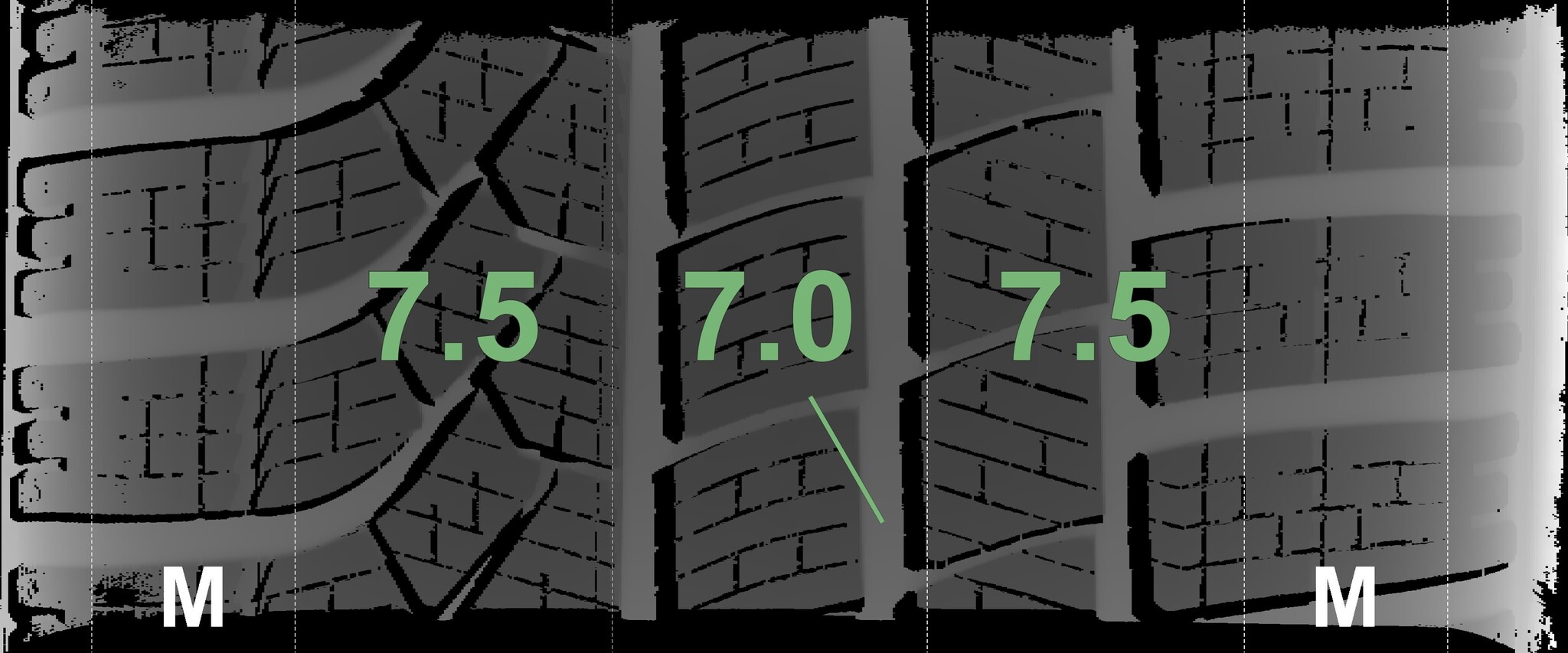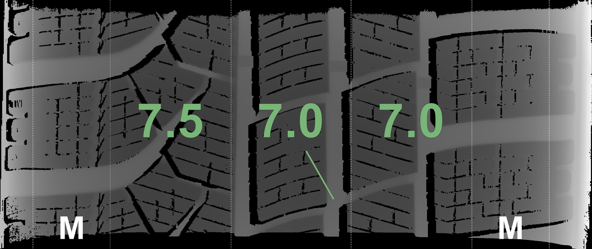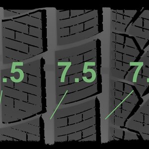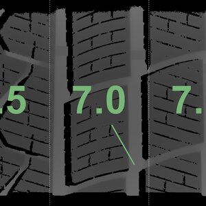 The measured tread depths and the details of the rims are shown above.