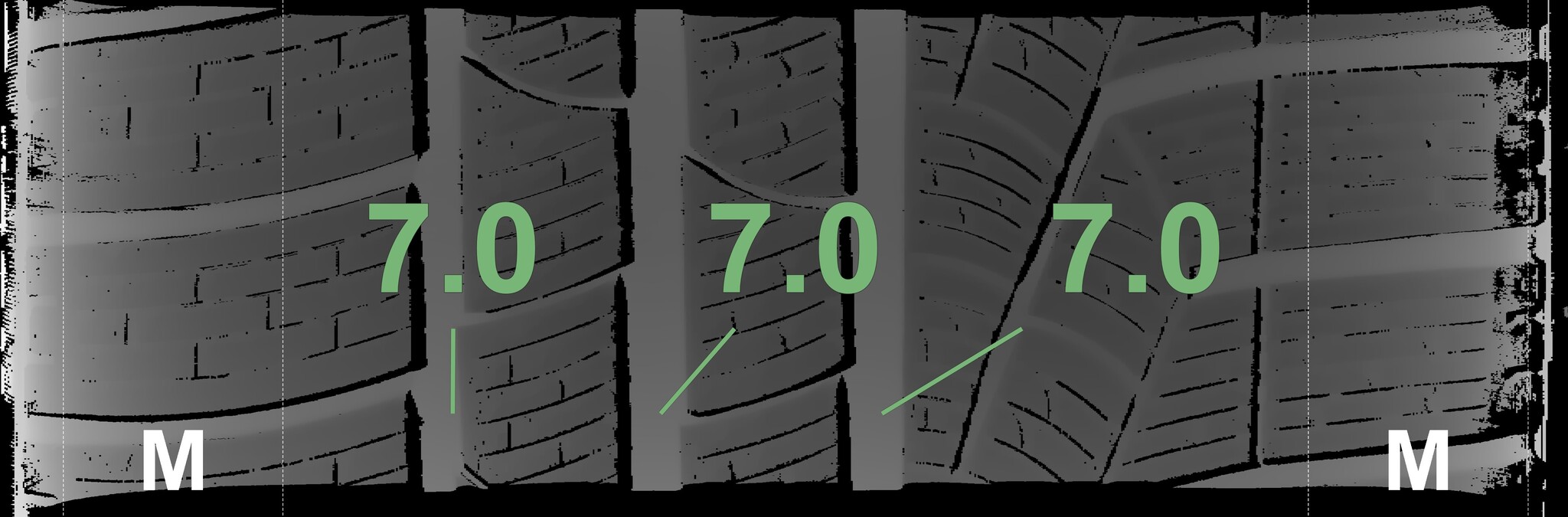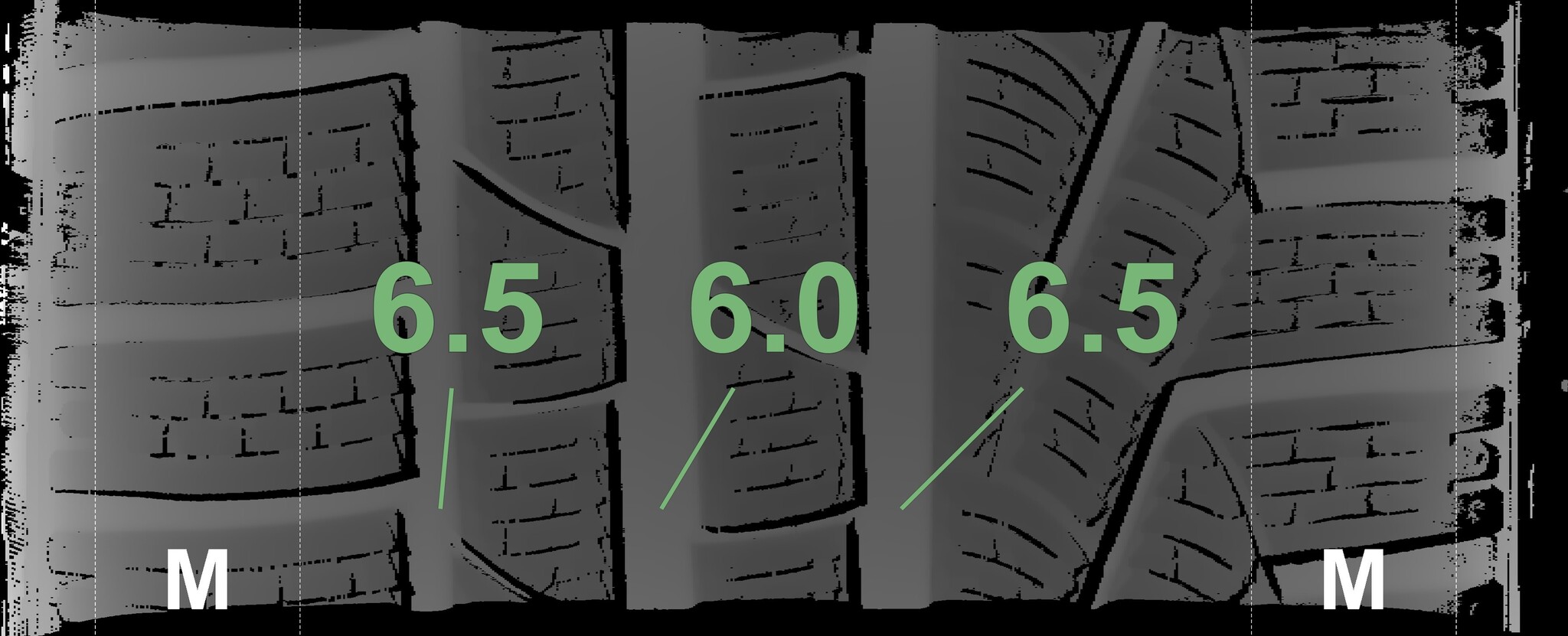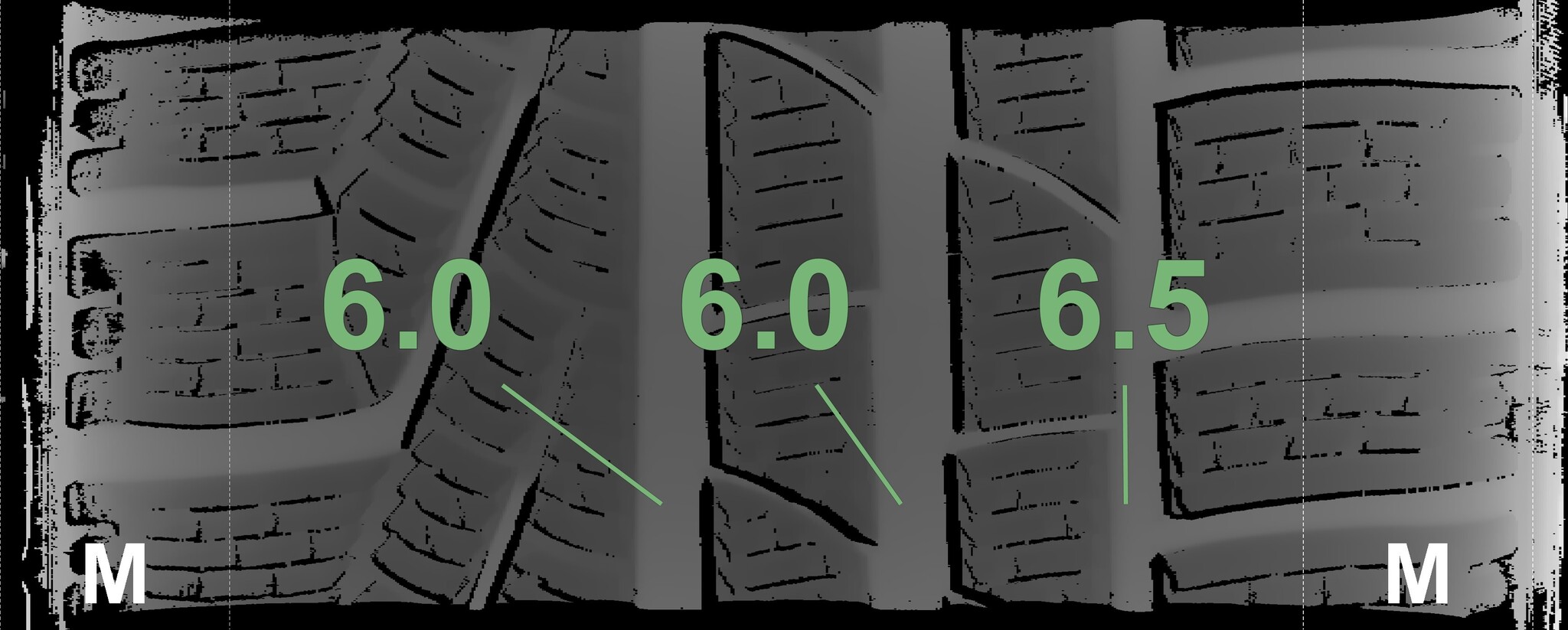 The measured tread depths and details of the rims are shown above.