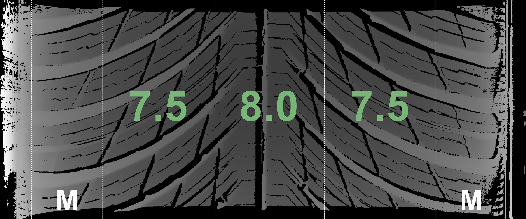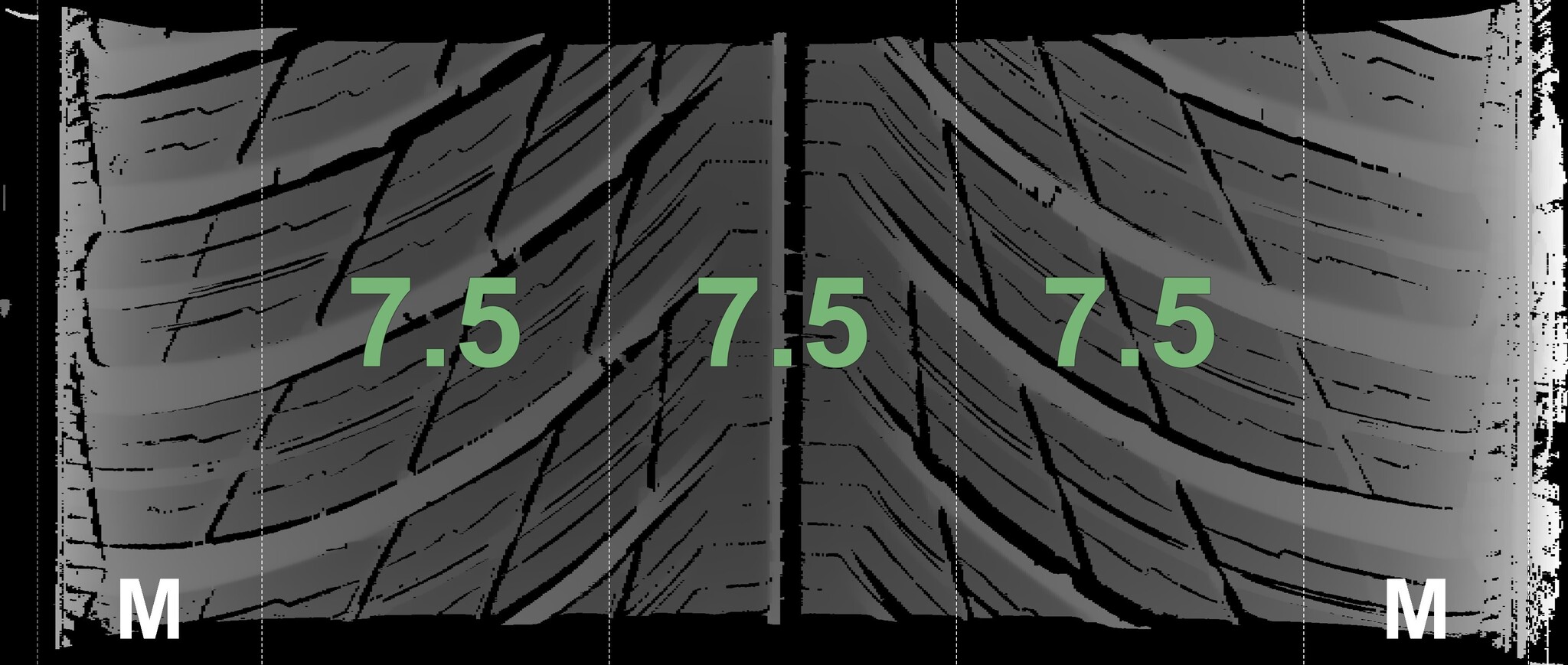 Condition | Profile depth | DOT | Front Right | Used | 7.5 mm | 4722 |