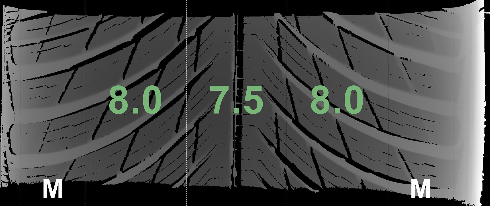 | Condition | Profile depth | DOT | Front Right | Used | 7.8 mm | 4723 |