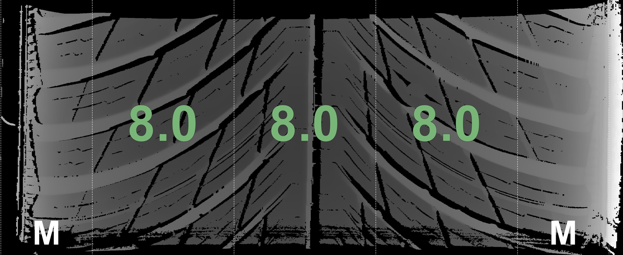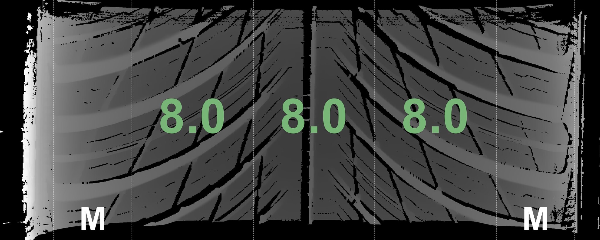 | Condition | Profile depth | DOT | Front Left | Used | 8.0 mm | 1623 |