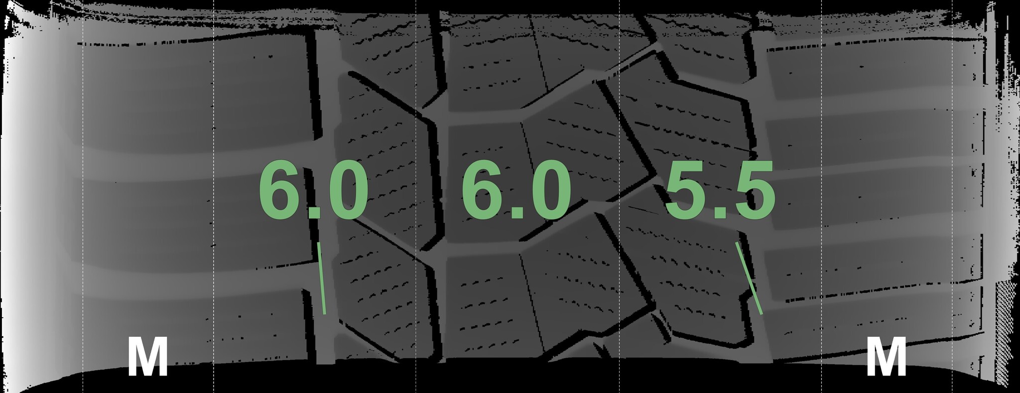 | Condition | Profile depth | DOT | Front Left | Used | 5.8 mm | 3520 |