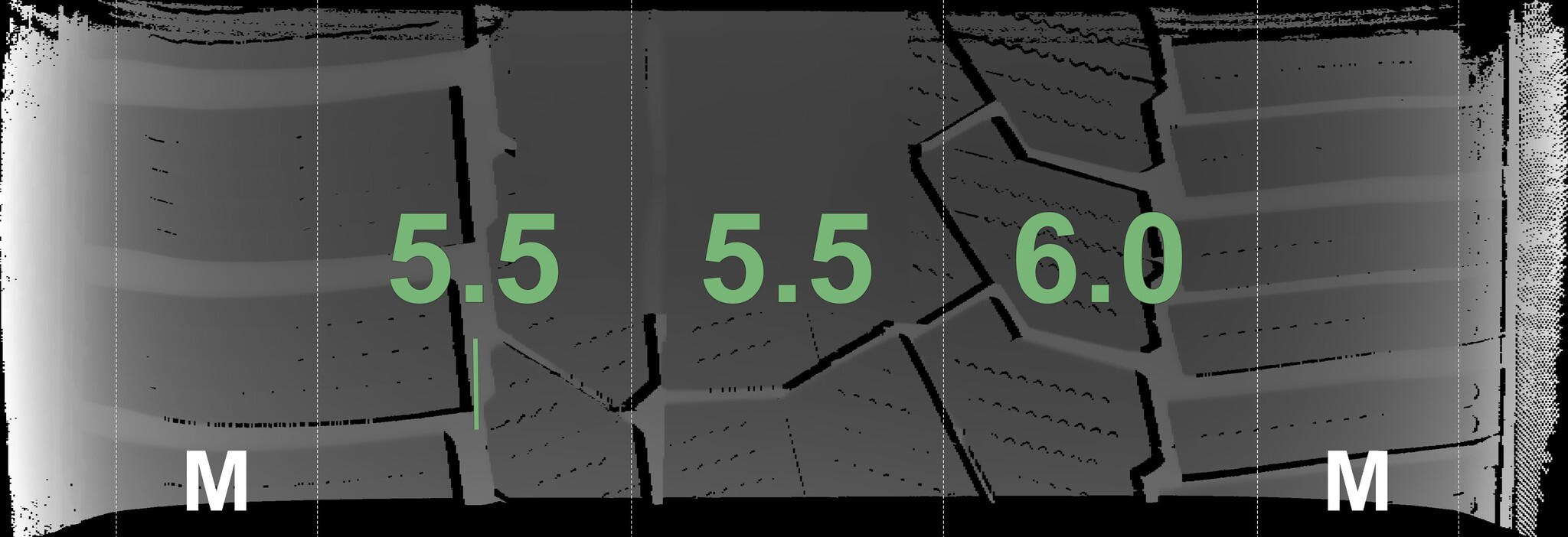 | Condition | Profile depth | DOT | Front Left | Used | 5.8 mm | 3520 |
