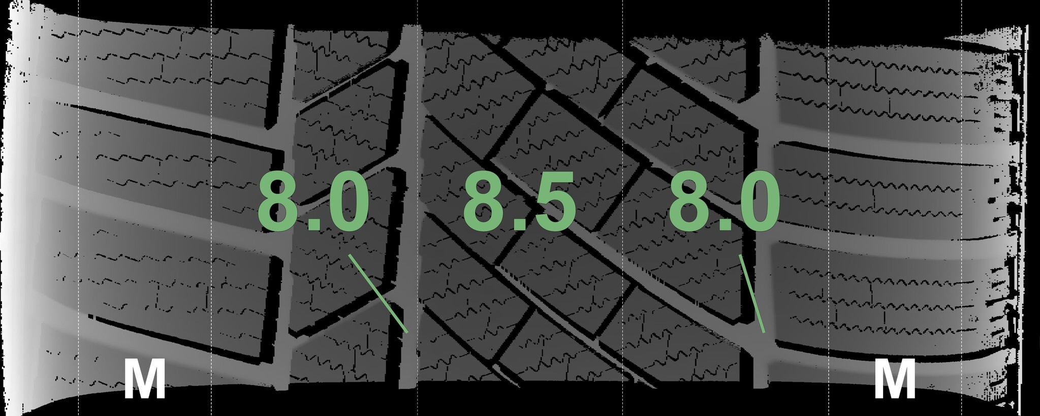 | Condition | Profile depth | DOT | Front Right | New | 7.5 mm | 3325 |