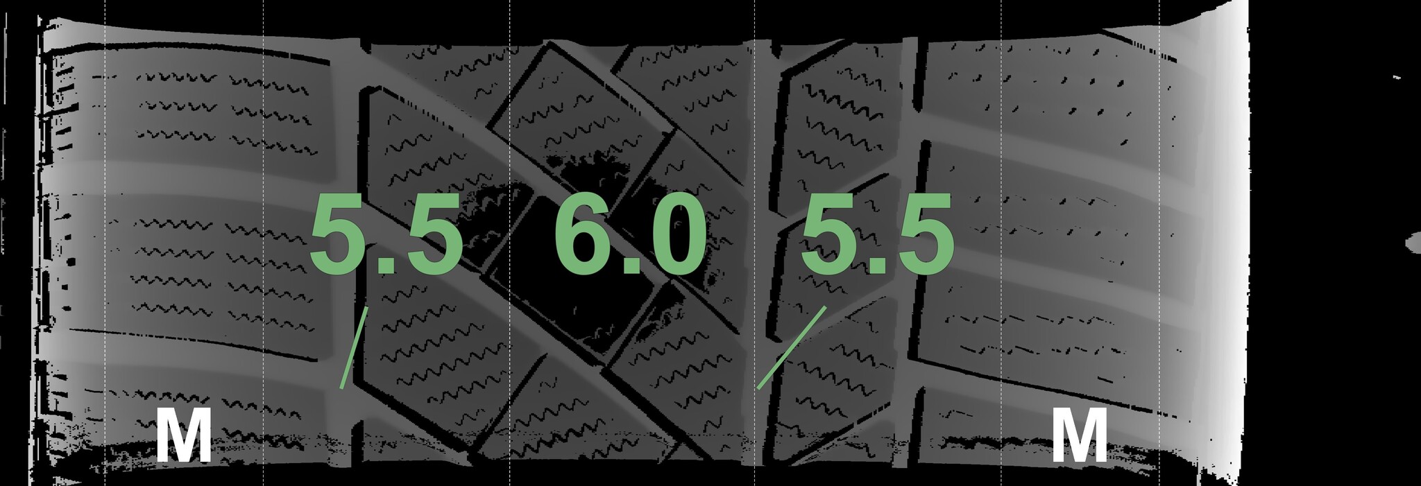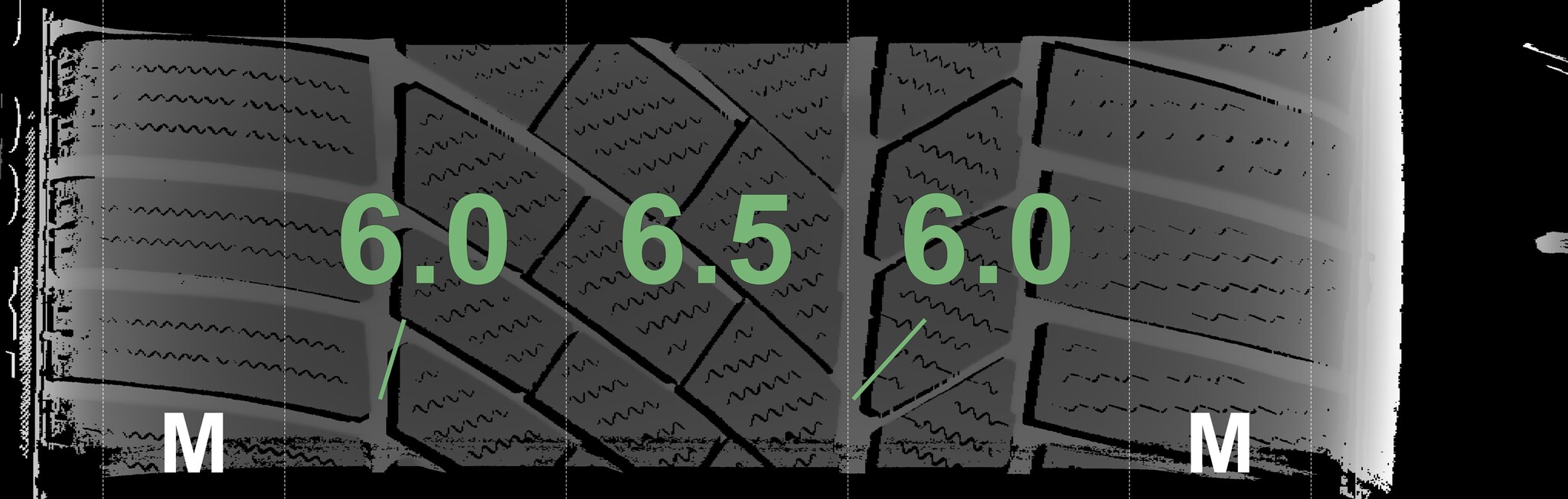 | Condition | Profile depth | DOT | Front Left | Used | 6.0 mm | 1920 |