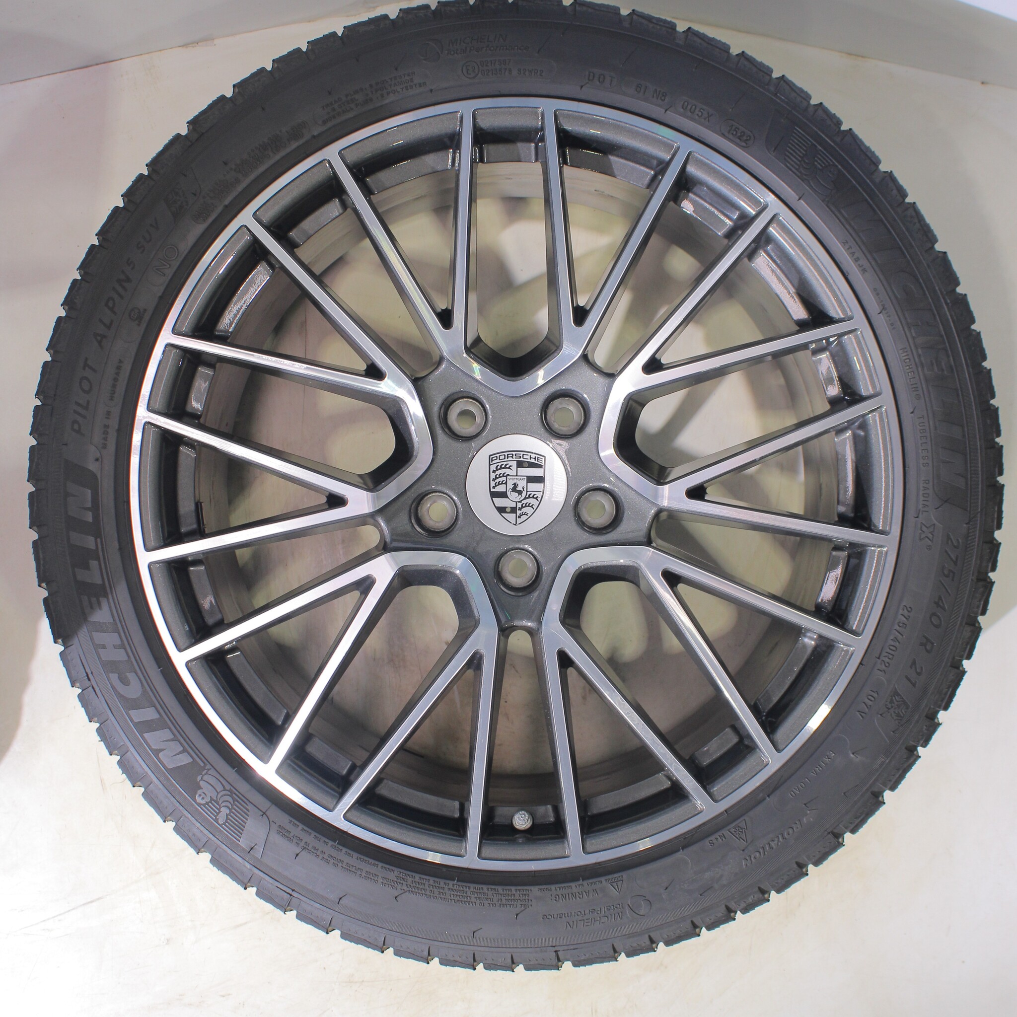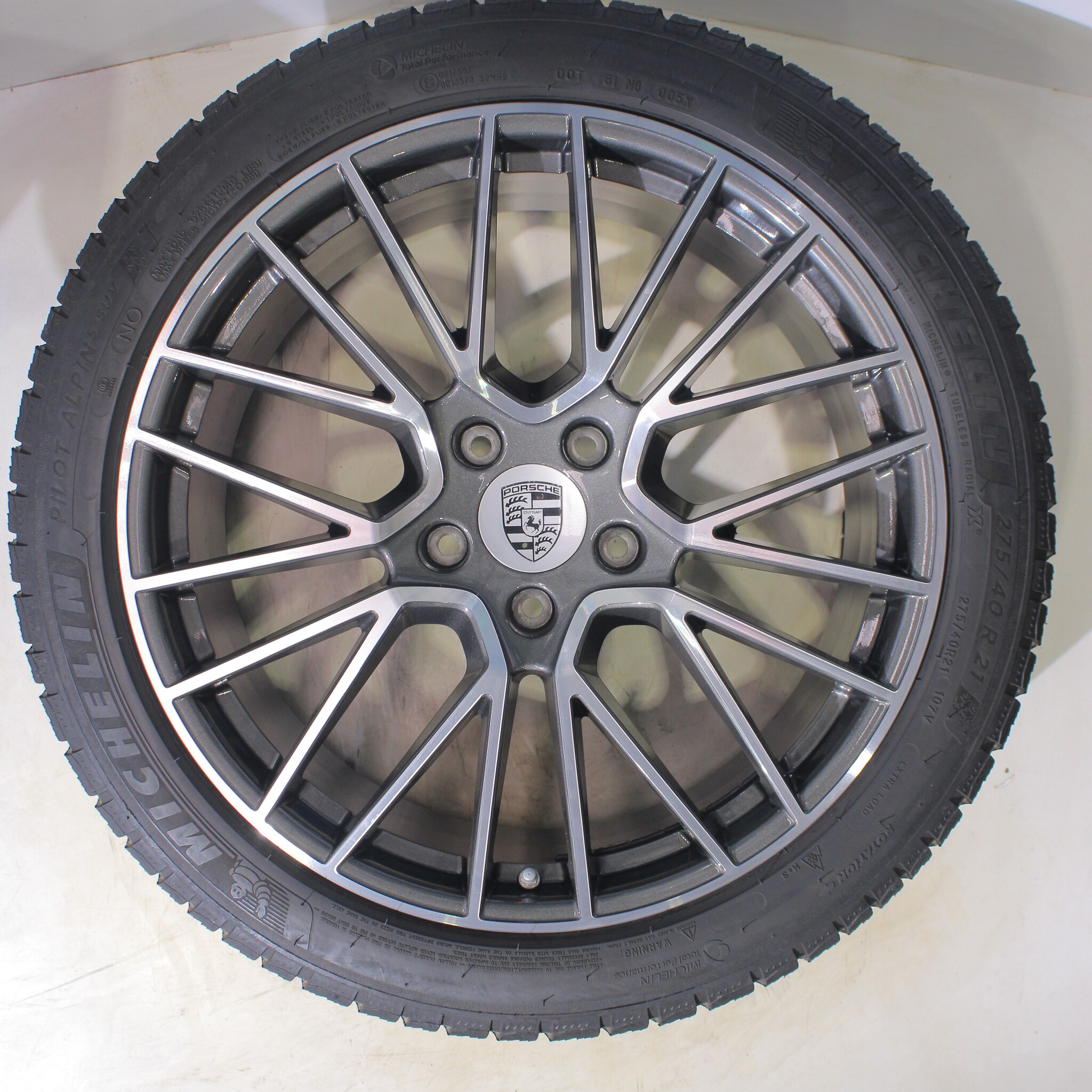 Original wheel set from Porsche, styling 21 inch rims with Michelin Pilotalpin 5 Winter tires. These rims are original rims from Porsche brand and suitable for: Porsche cayenne E3.