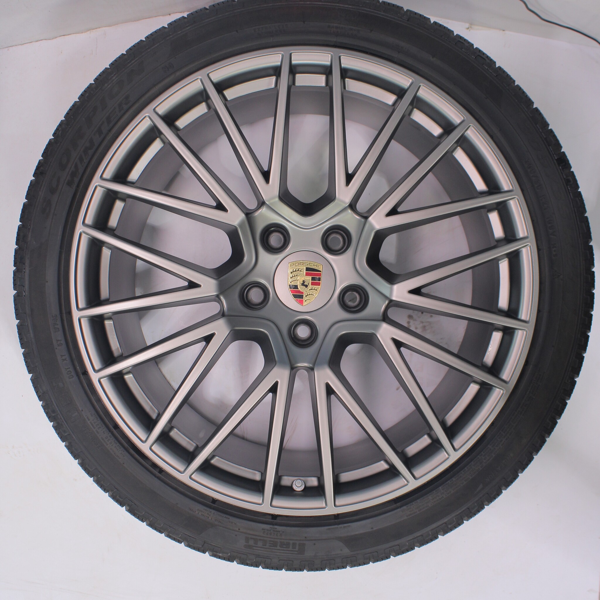 Original wheel set from Porsche, styling 21 inch rims with Pirelli Scorpion Winter tires. These rims are original rims from Porsche brand and suitable for: Porsche Cayenne E3.
