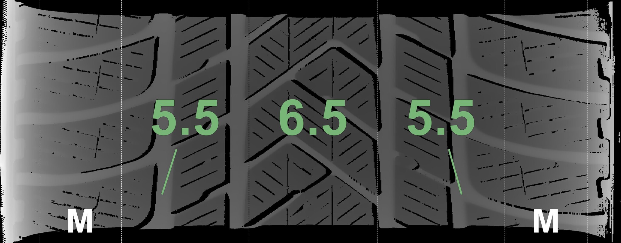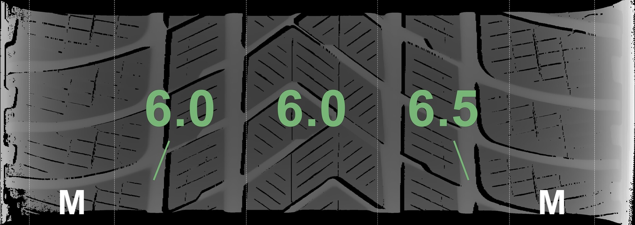 The measured tread depths and details of the rims are shown above.