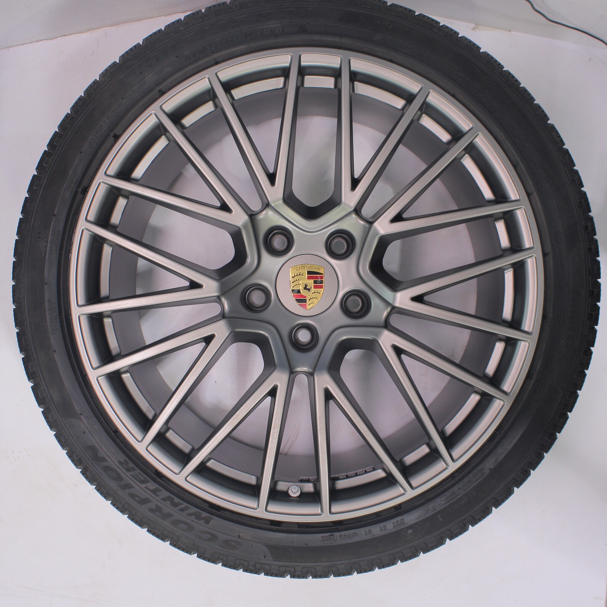 Original wheel set from Porsche, styling 21 inch rims with Pirelli Scorpion Winter tires. These rims are original rims from Porsche brand and suitable for: Porsche Cayenne E3.