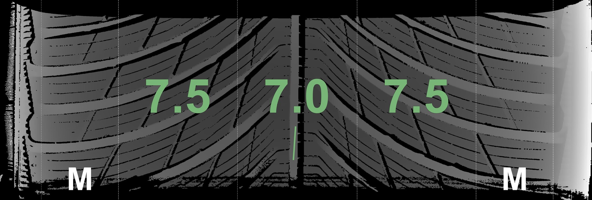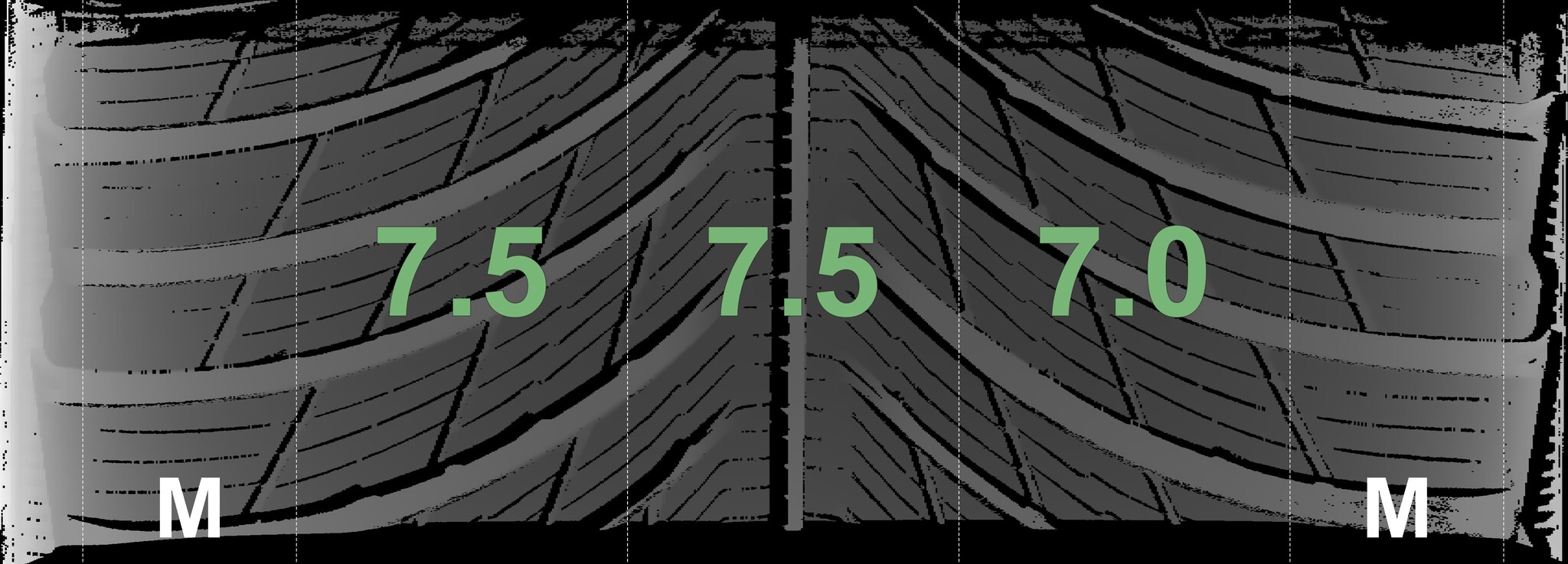 | Condition | Profile depth | DOT | Front Right | New | 7.2 mm | 3125 |