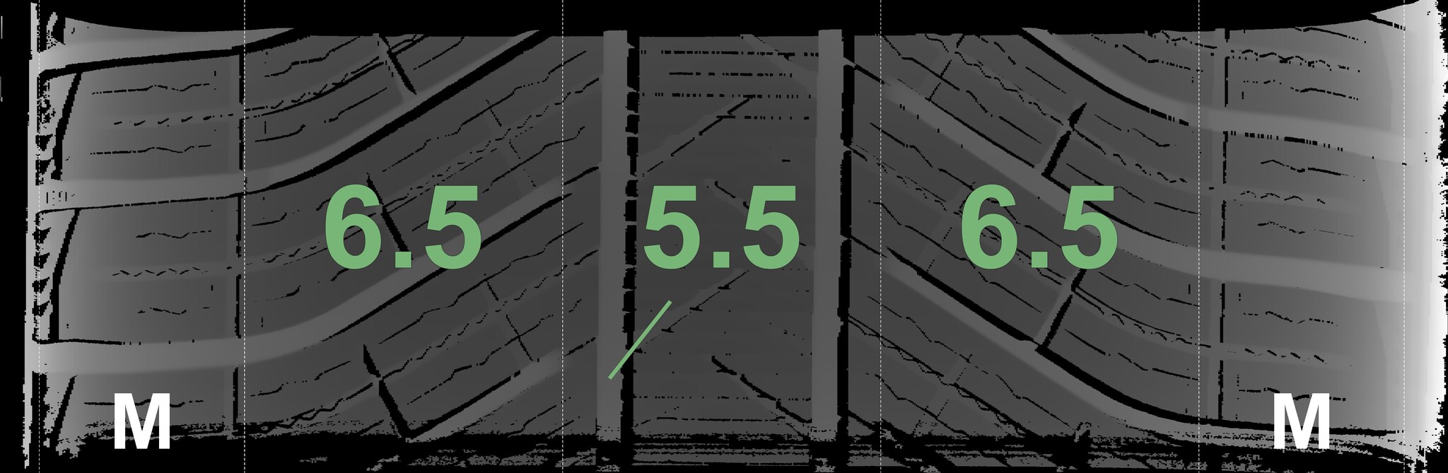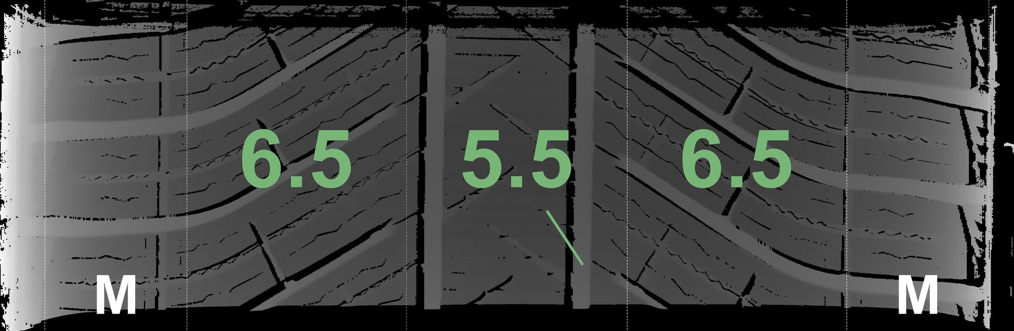 The measured tread depths and the details of the rims are shown above.