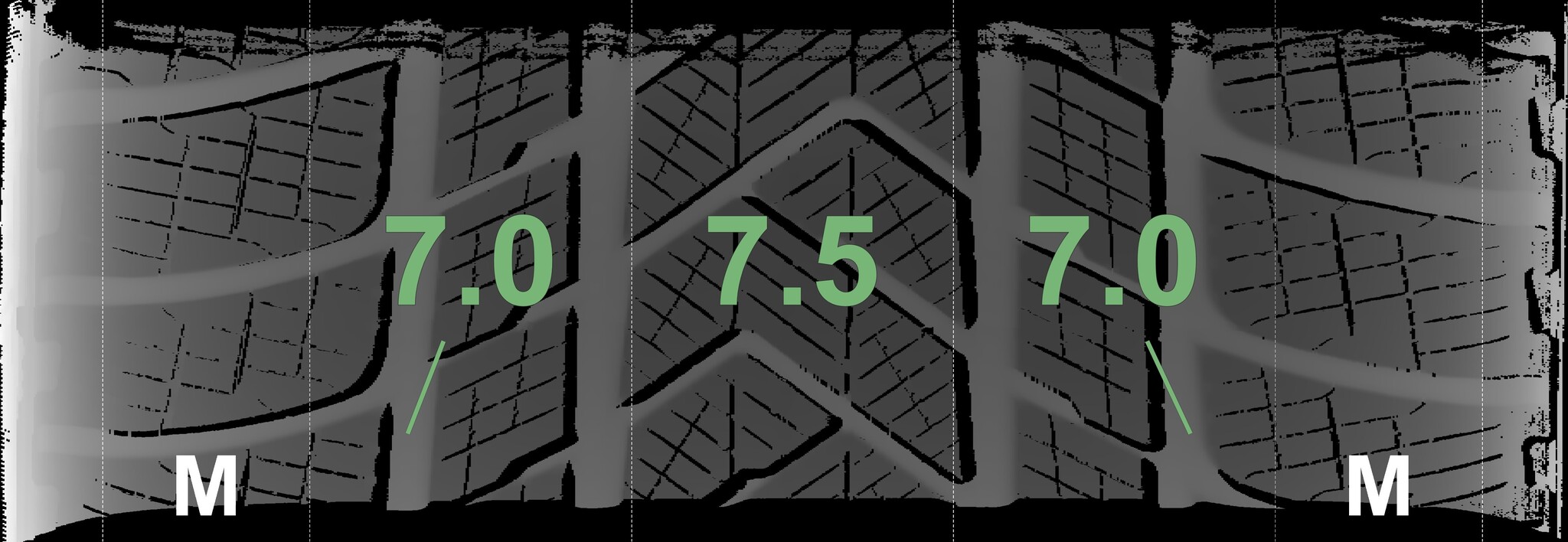 The measured tread depths and the details of the rims are shown above.