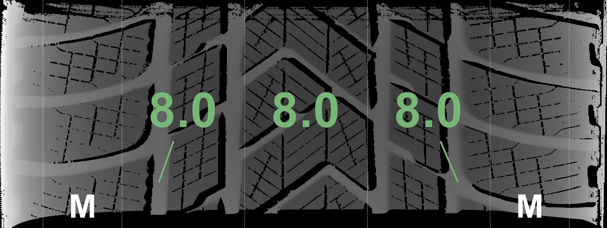 | Condition | Profile depth | DOT | Front Left | Demo nubs still visible | 8.0 mm | 3425 |