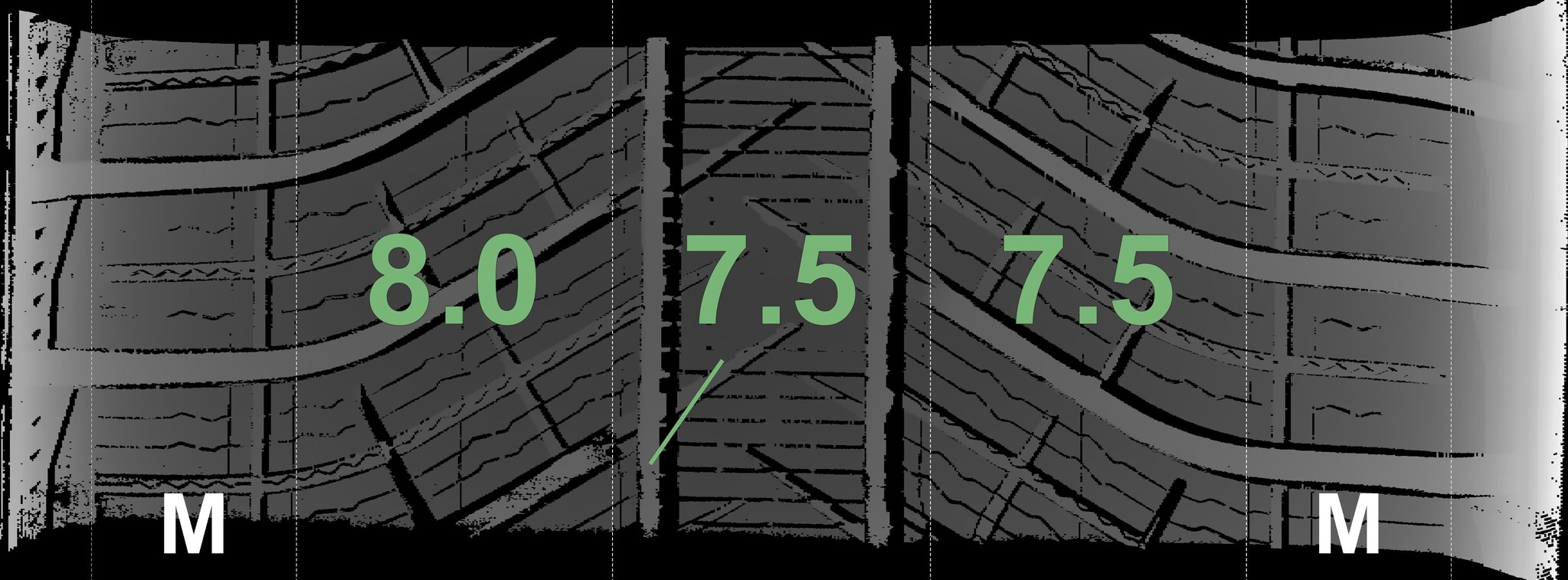 | Condition | Profile depth | DOT | Rear Right | New | 7.5 mm | 3525 |