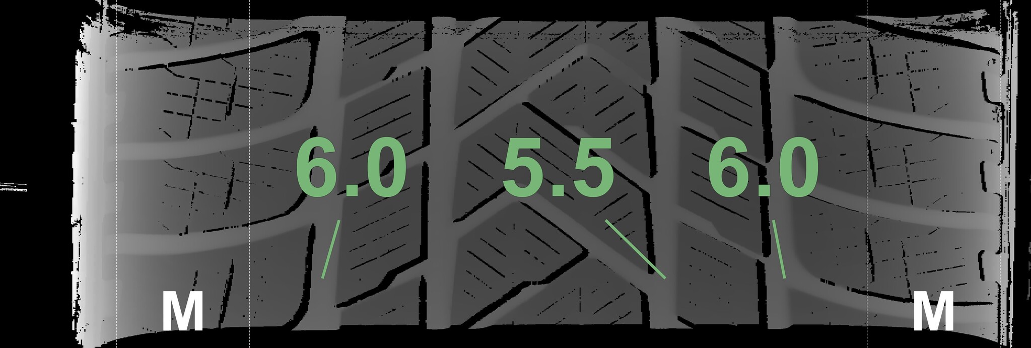 | Condition | Profile depth | DOT | Front Left | Used | 6.0 mm | 3721 |