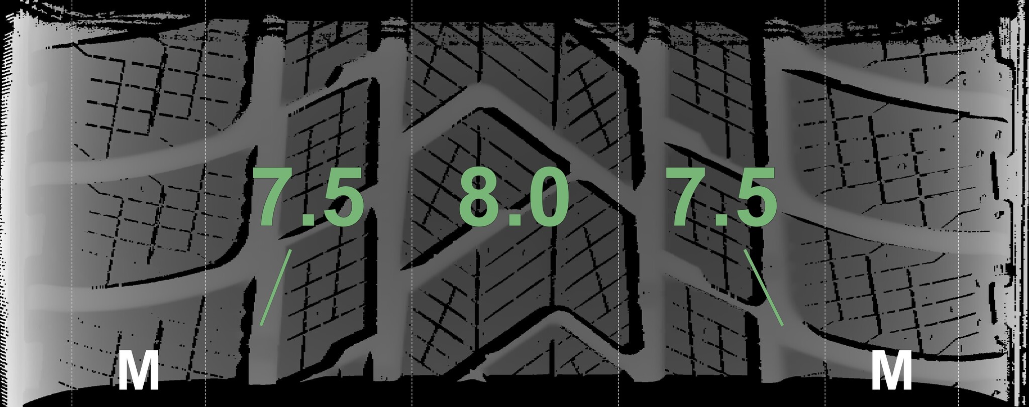 | Condition | Profile depth | DOT | Front Right | New | 7.5 mm | 4124 |