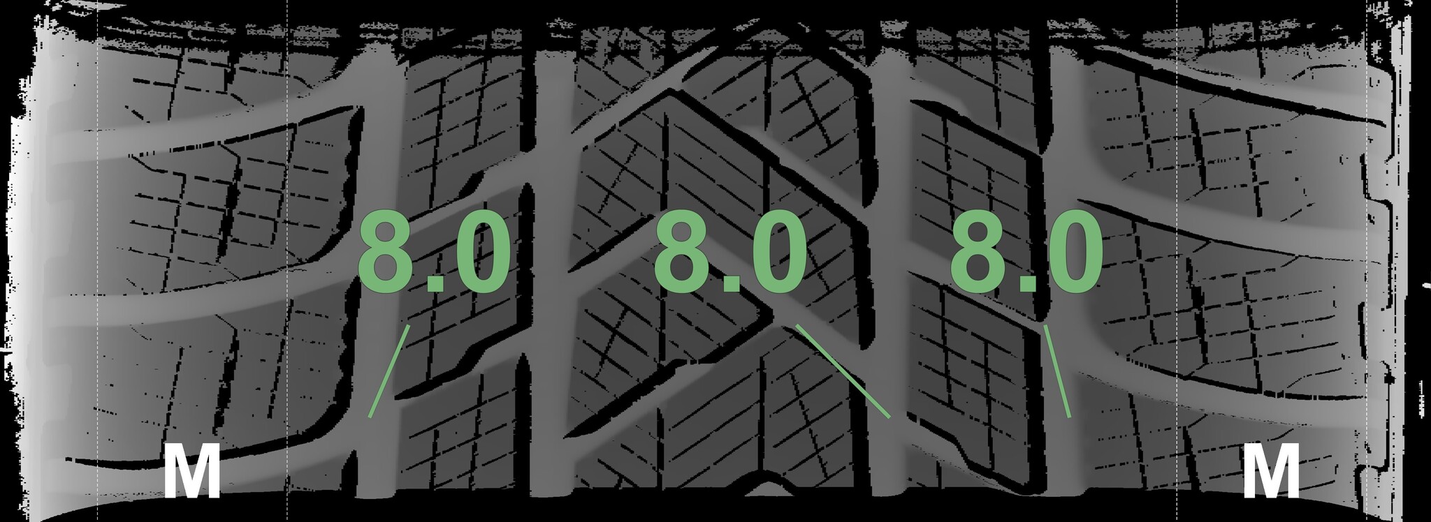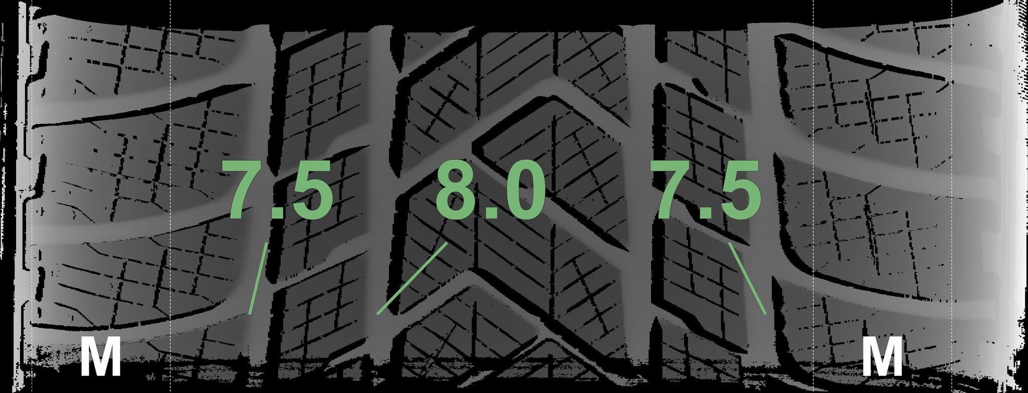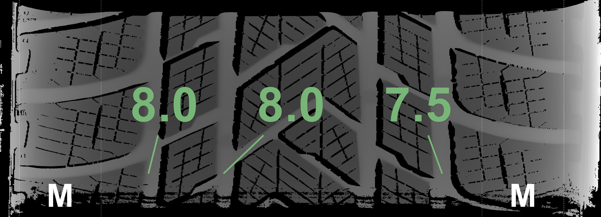 The measured tread depths and the details of the rims are shown above.