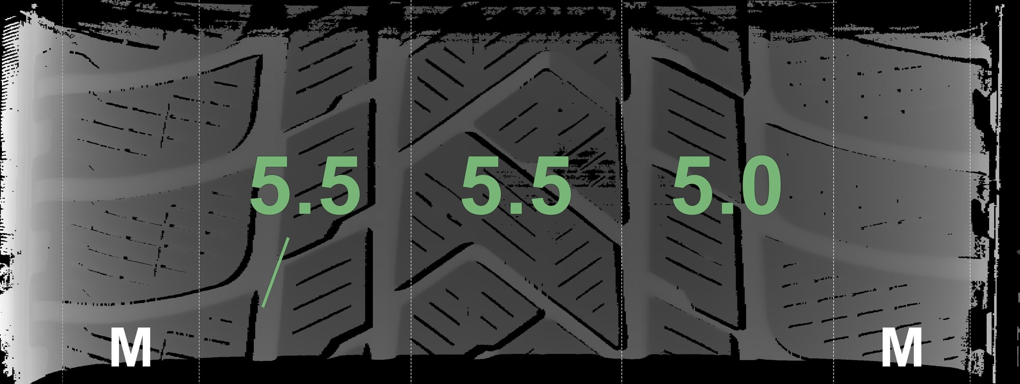 | Condition | Profile depth | DOT | Rear Left | New | 8.0 mm | 0825 |