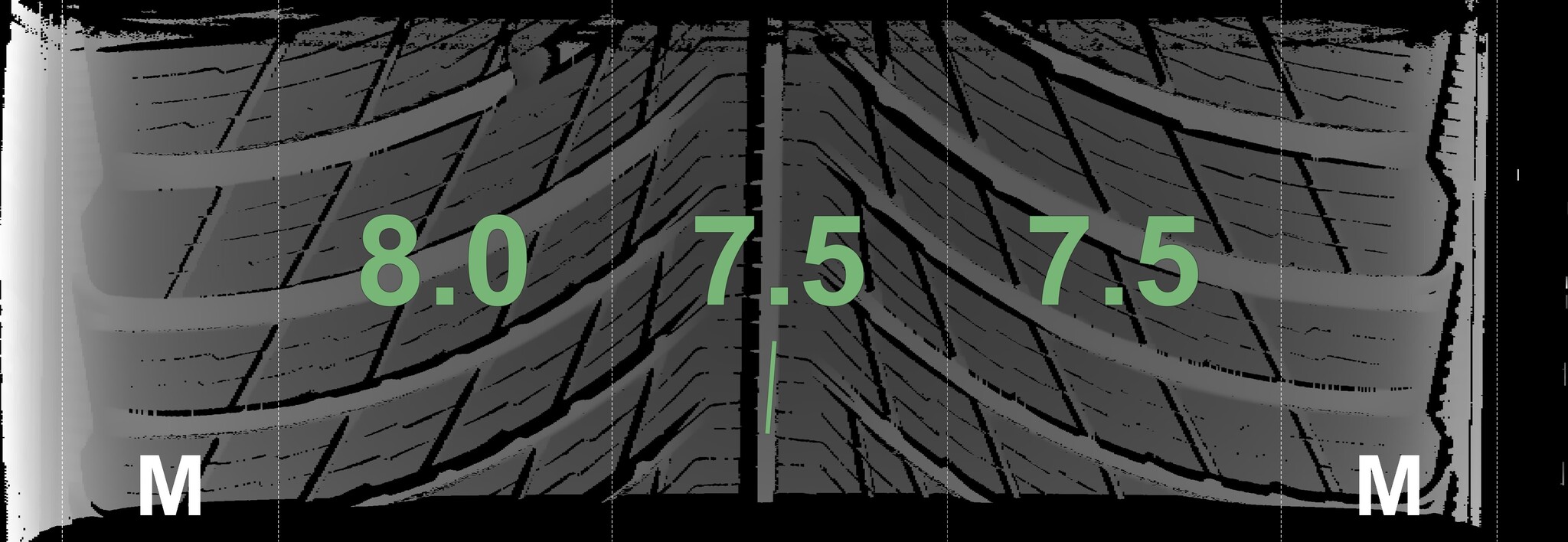 | Condition | Profile depth | DOT | Front Right | New | 7.5 mm | 4725 |