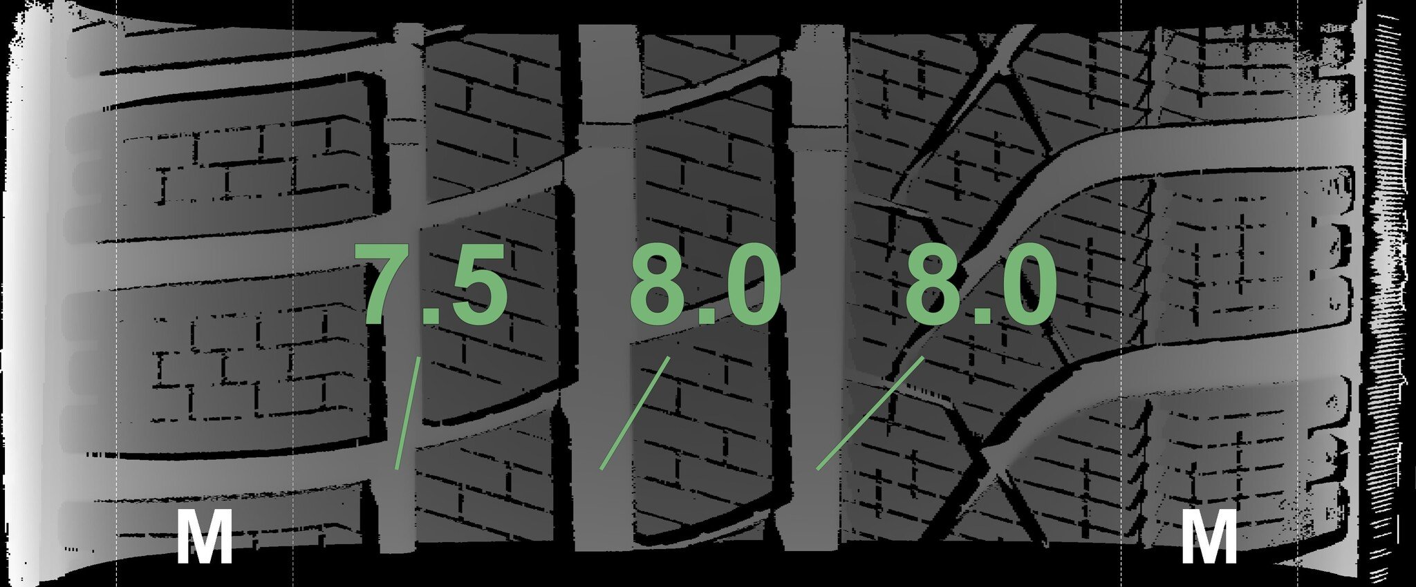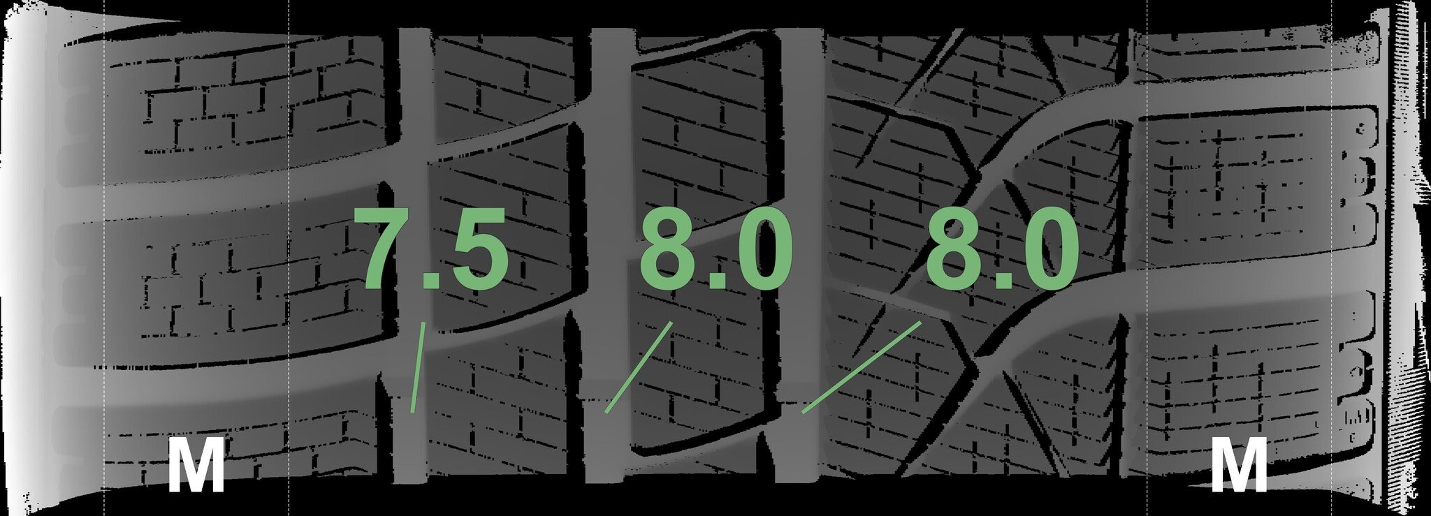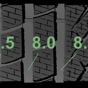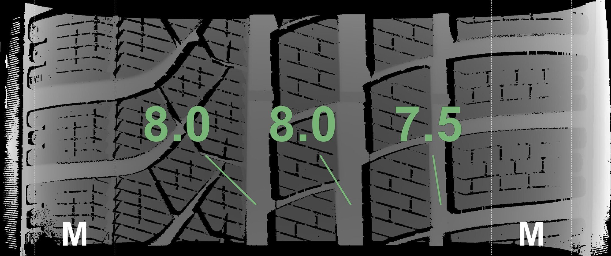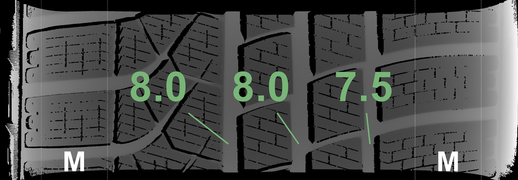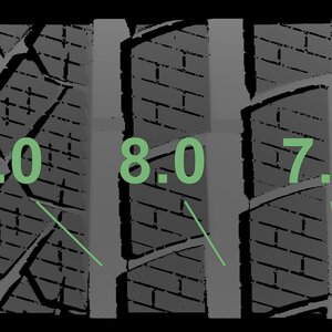 The measured tread depths and the details of the rims are shown above.
