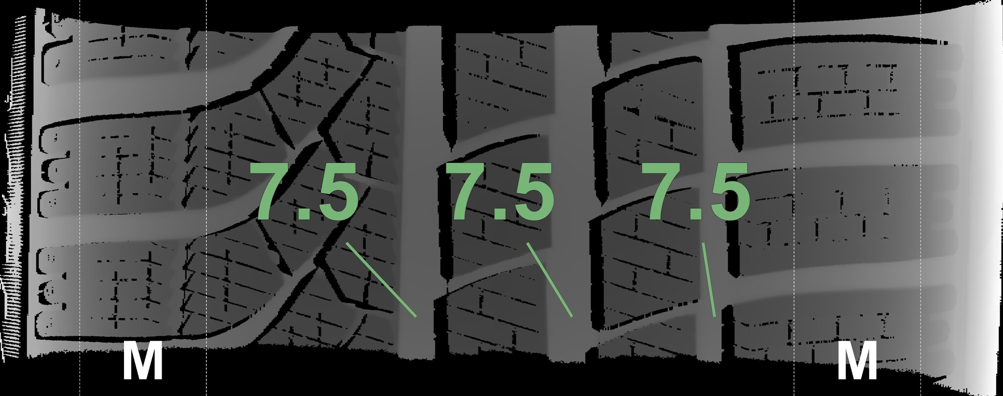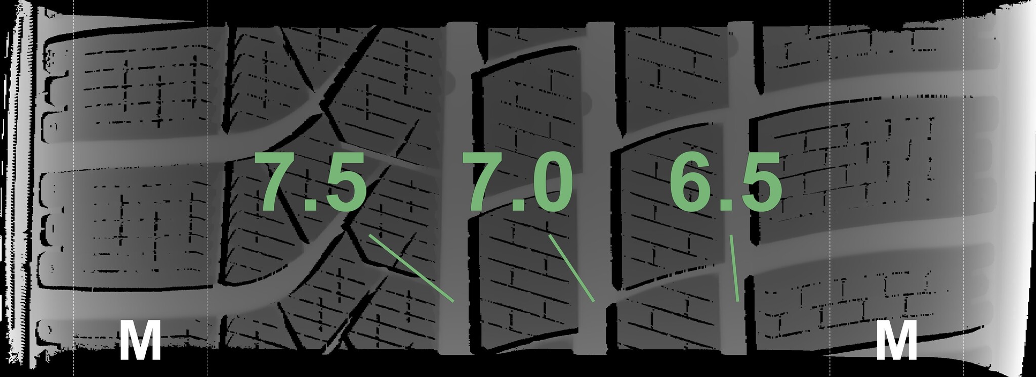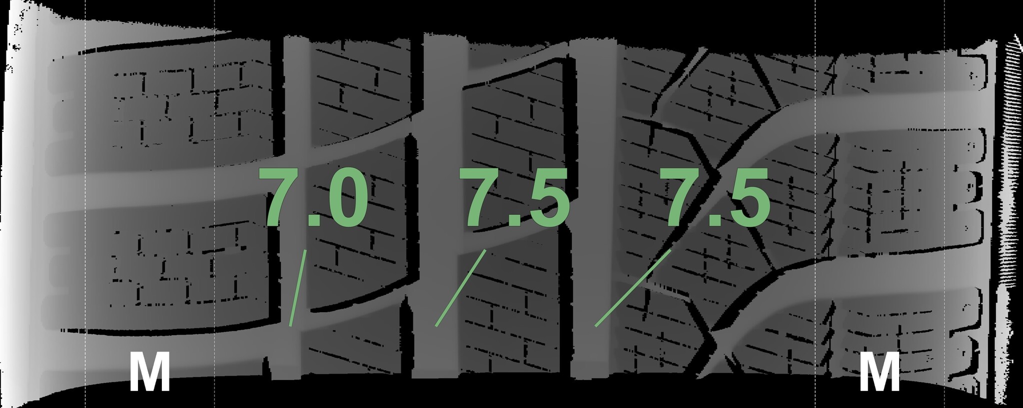 The measured tread depths and the details of the rims are shown above.