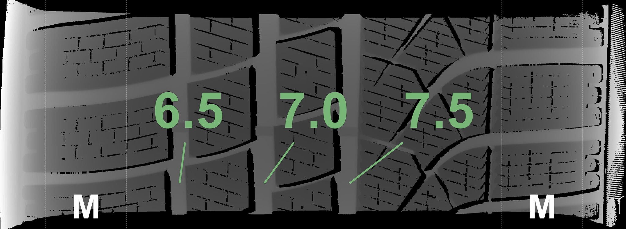 The winter tires mounted on this wheel set are equipped with the snowflake symbol required in Germany and Austria and are also marked M+S.