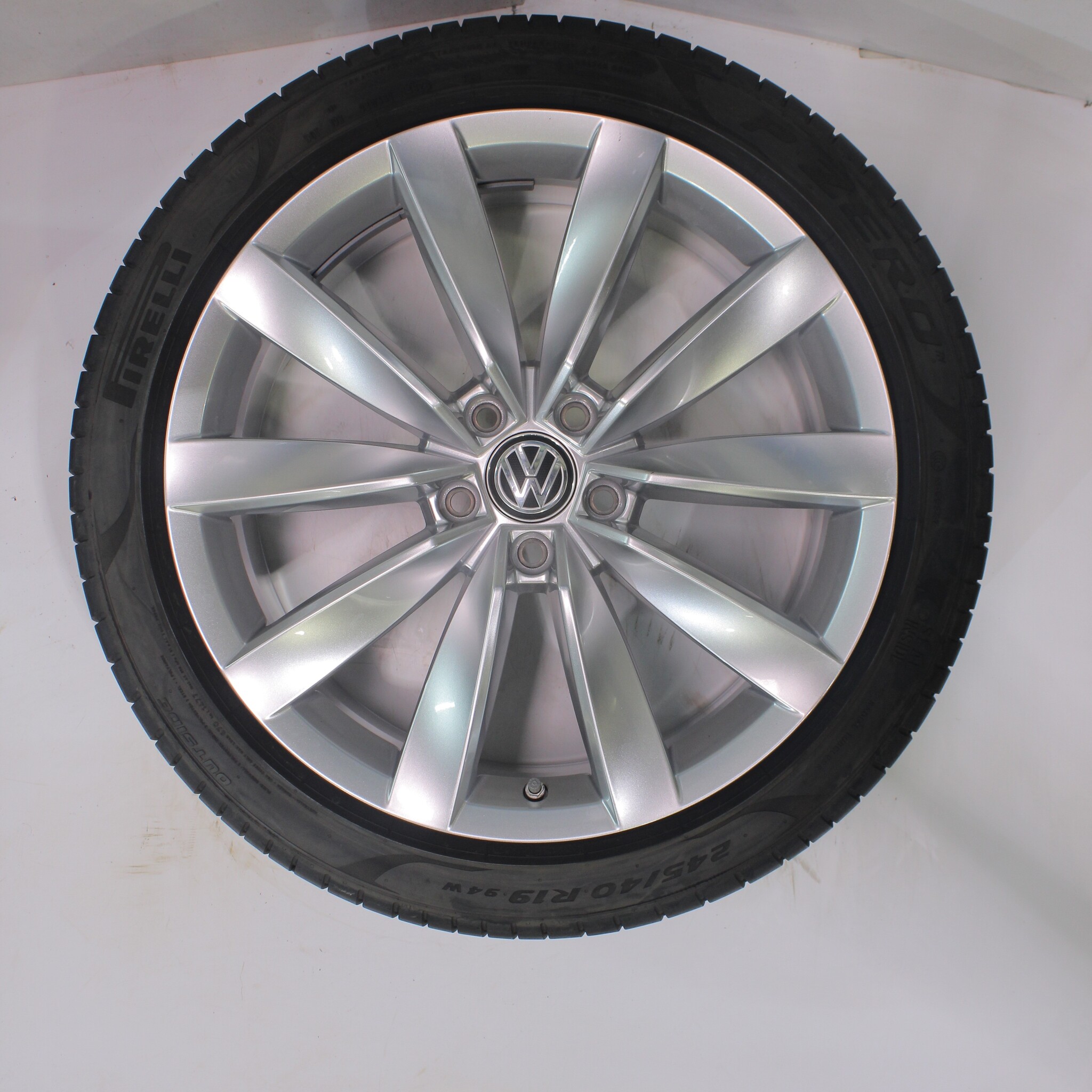 Original wheel set from Volkswagen, 19-inch rims with Pirelli PZERO Summer tires. These rims are original Volkswagen brand rims and suitable for: Volkswagen Arteon Passat.