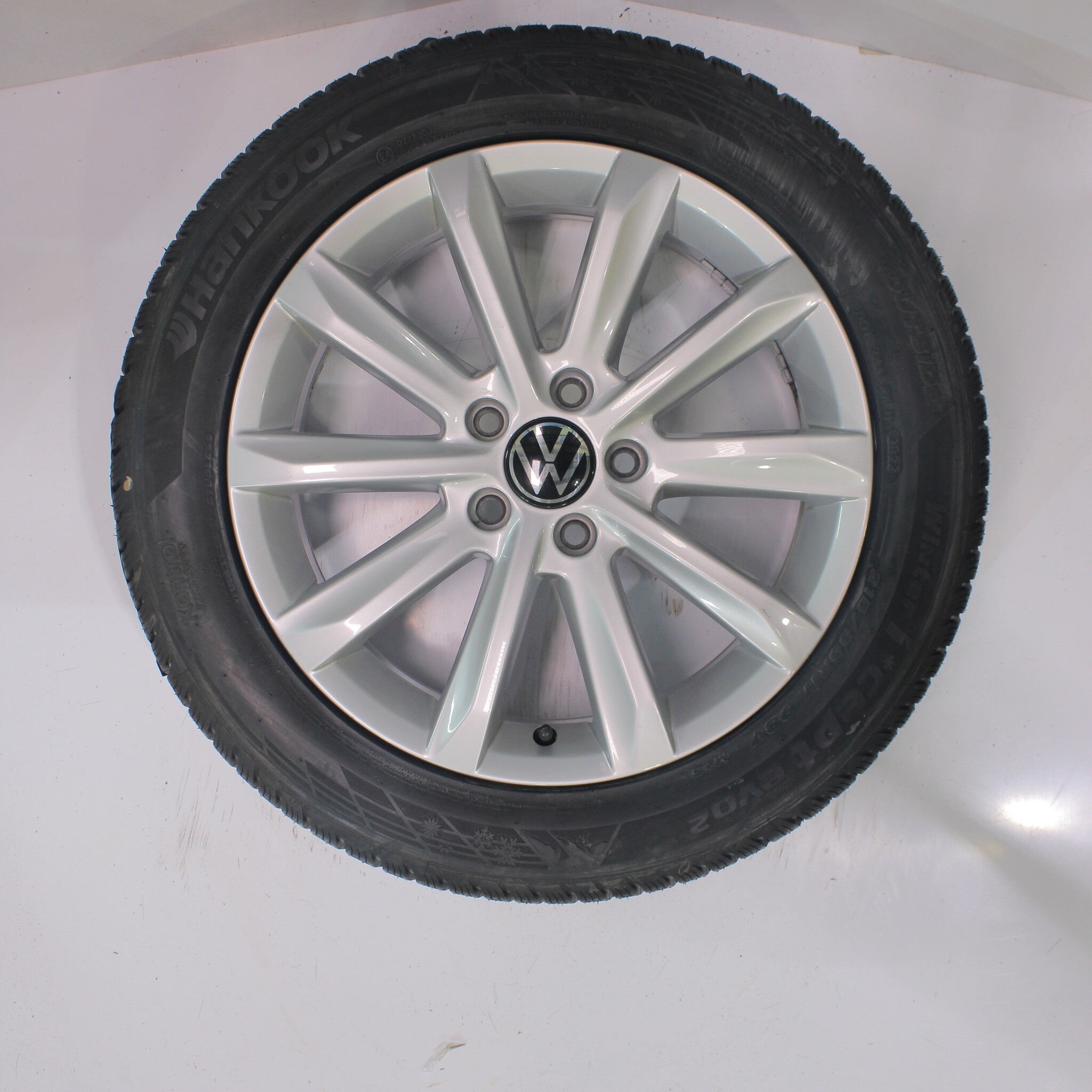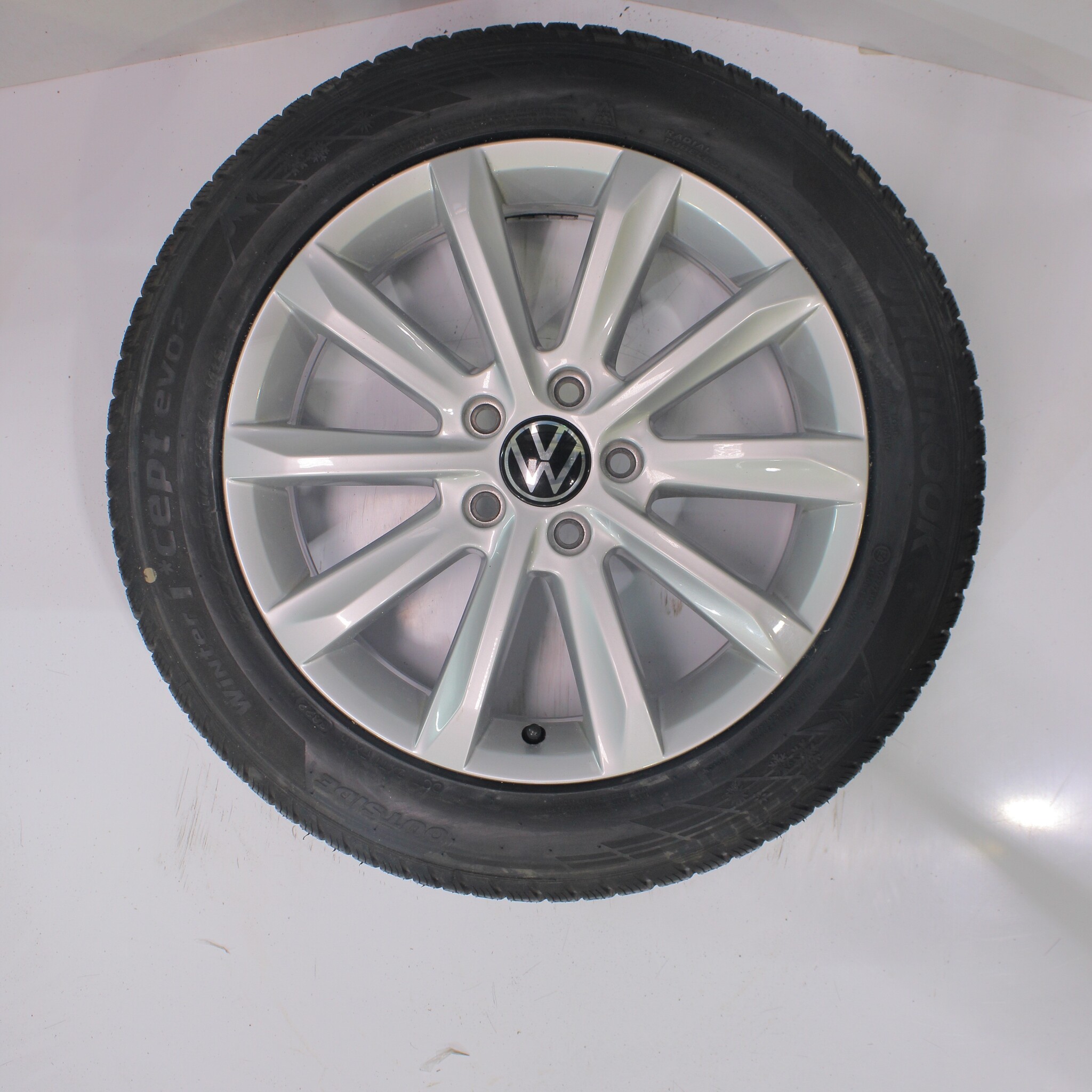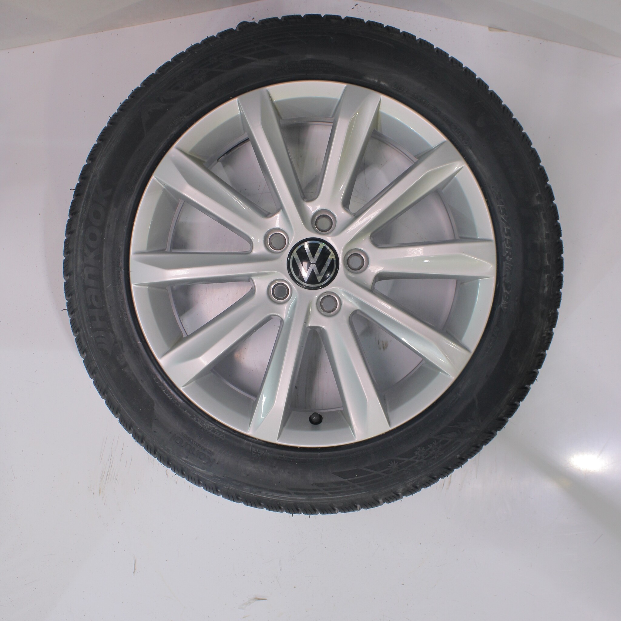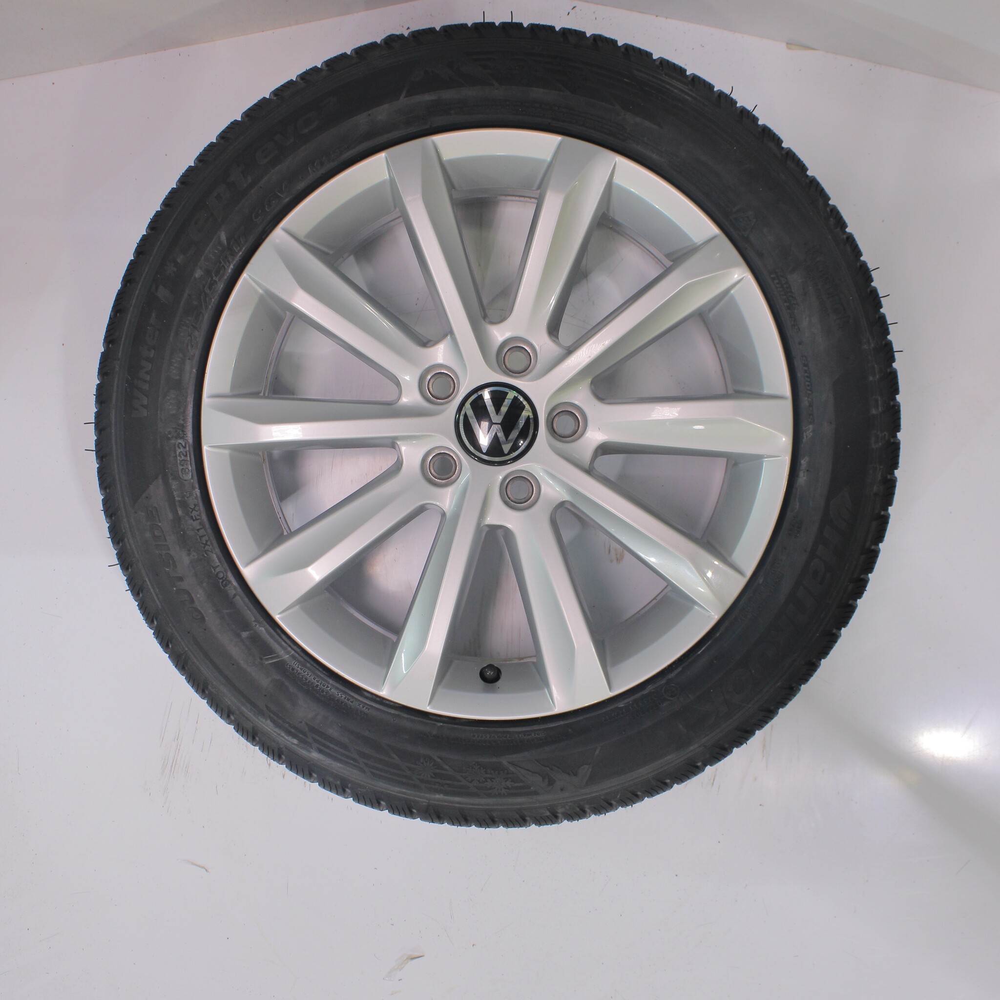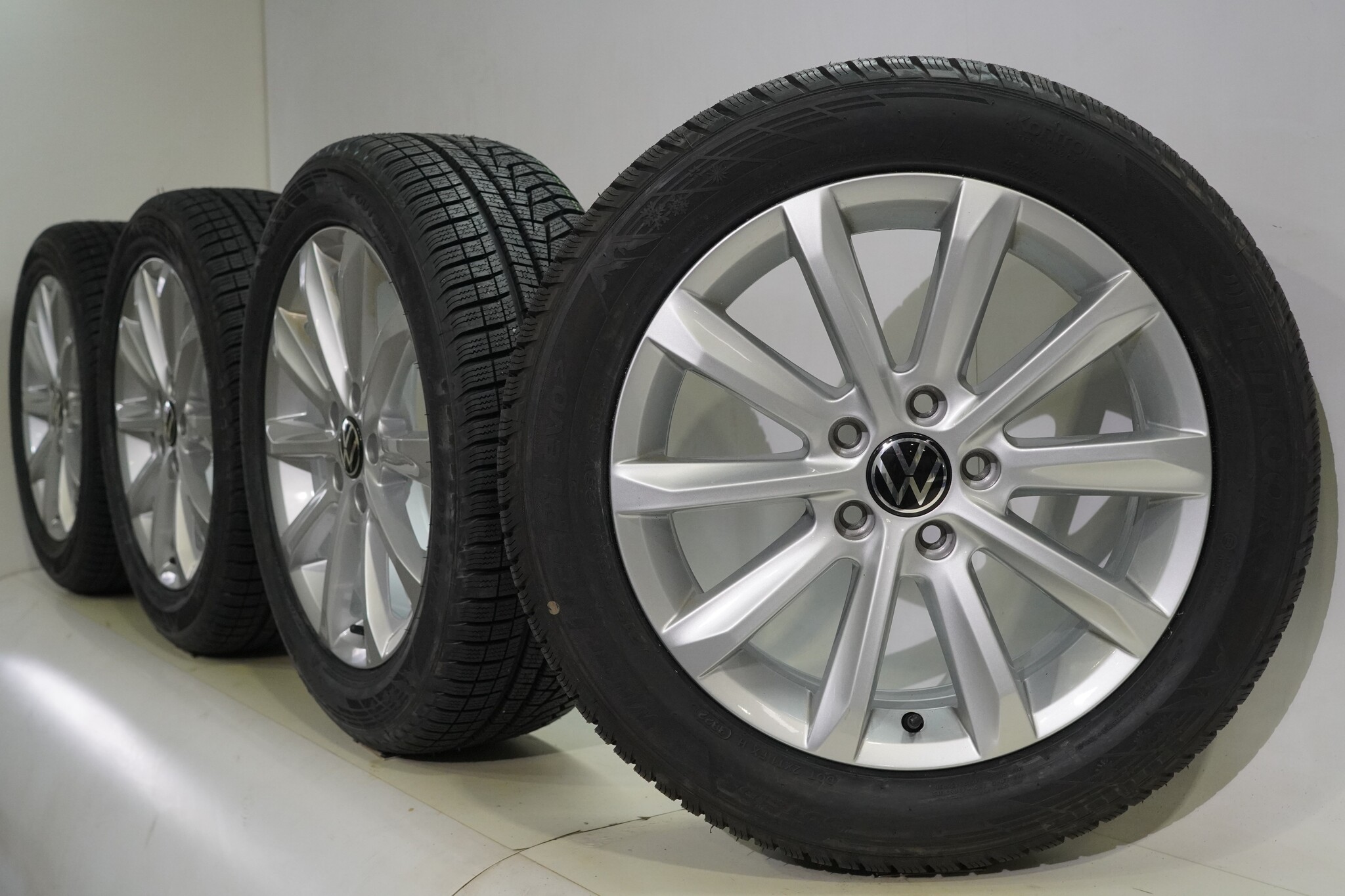 Original wheel set from Volkswagen, Helsinki styling, 17-inch rims with Hankook Winter i*cept evo2 Winter tires. These rims are original Volkswagen brand rims and suitable for: Volkswagen Arteon Passat.