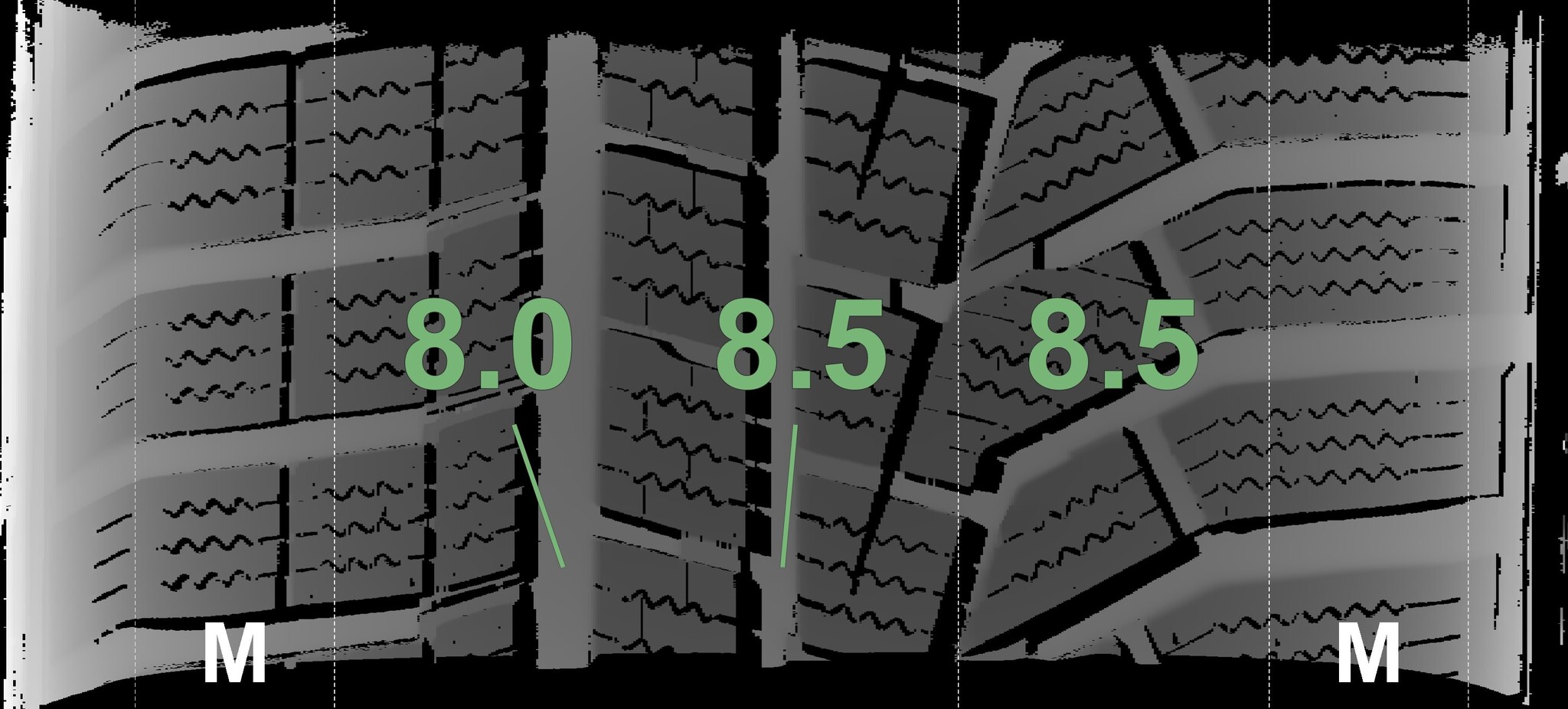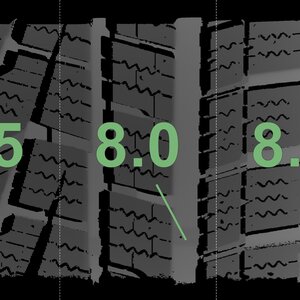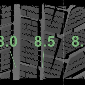 The measured tread depths and the details of the rims are shown above.