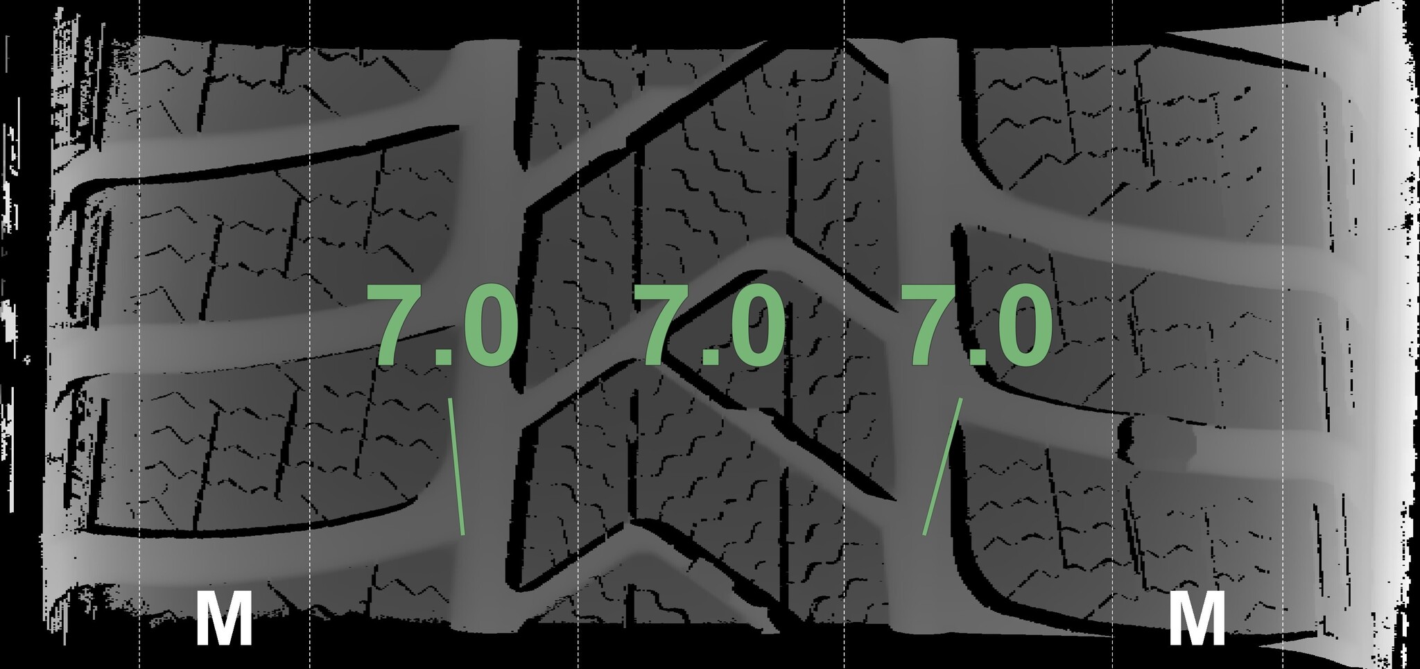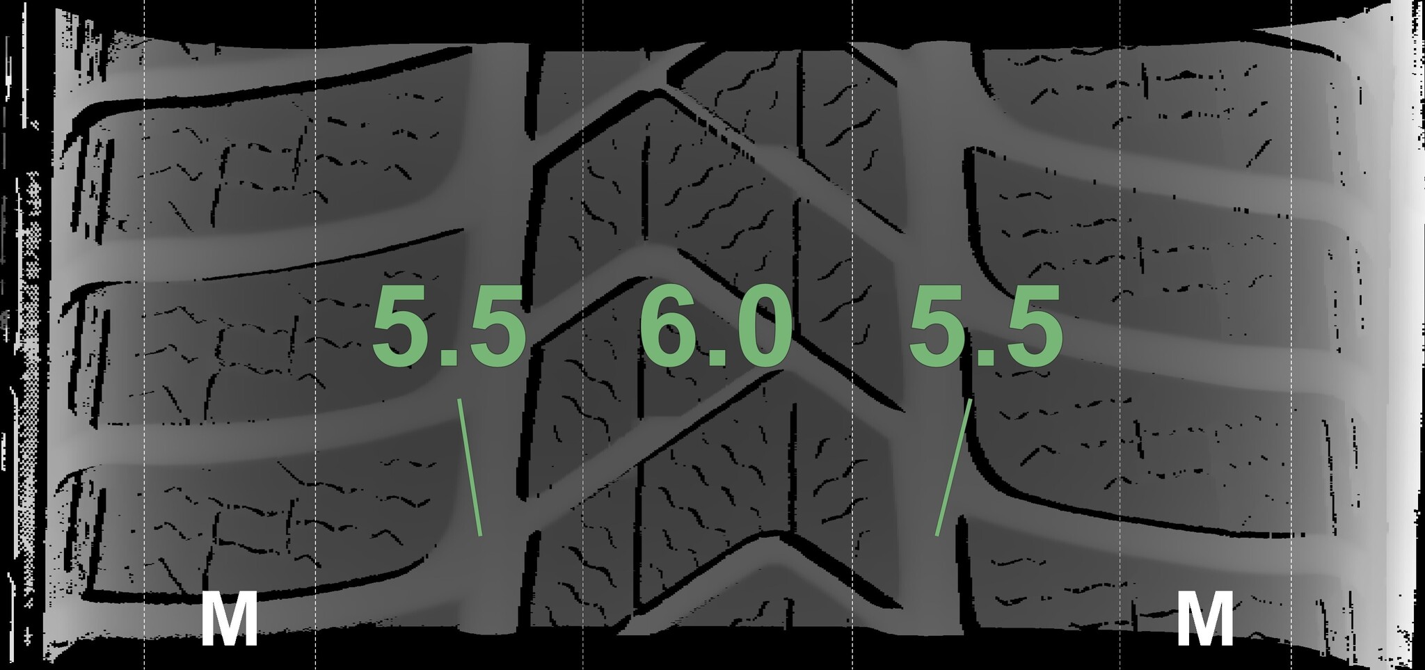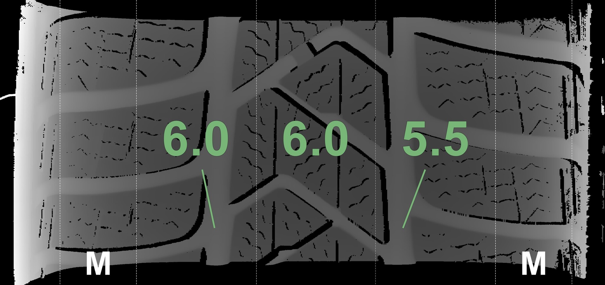 The measured tread depths and details of the rims are shown above.