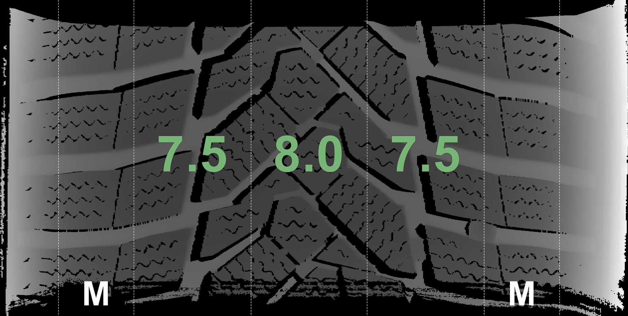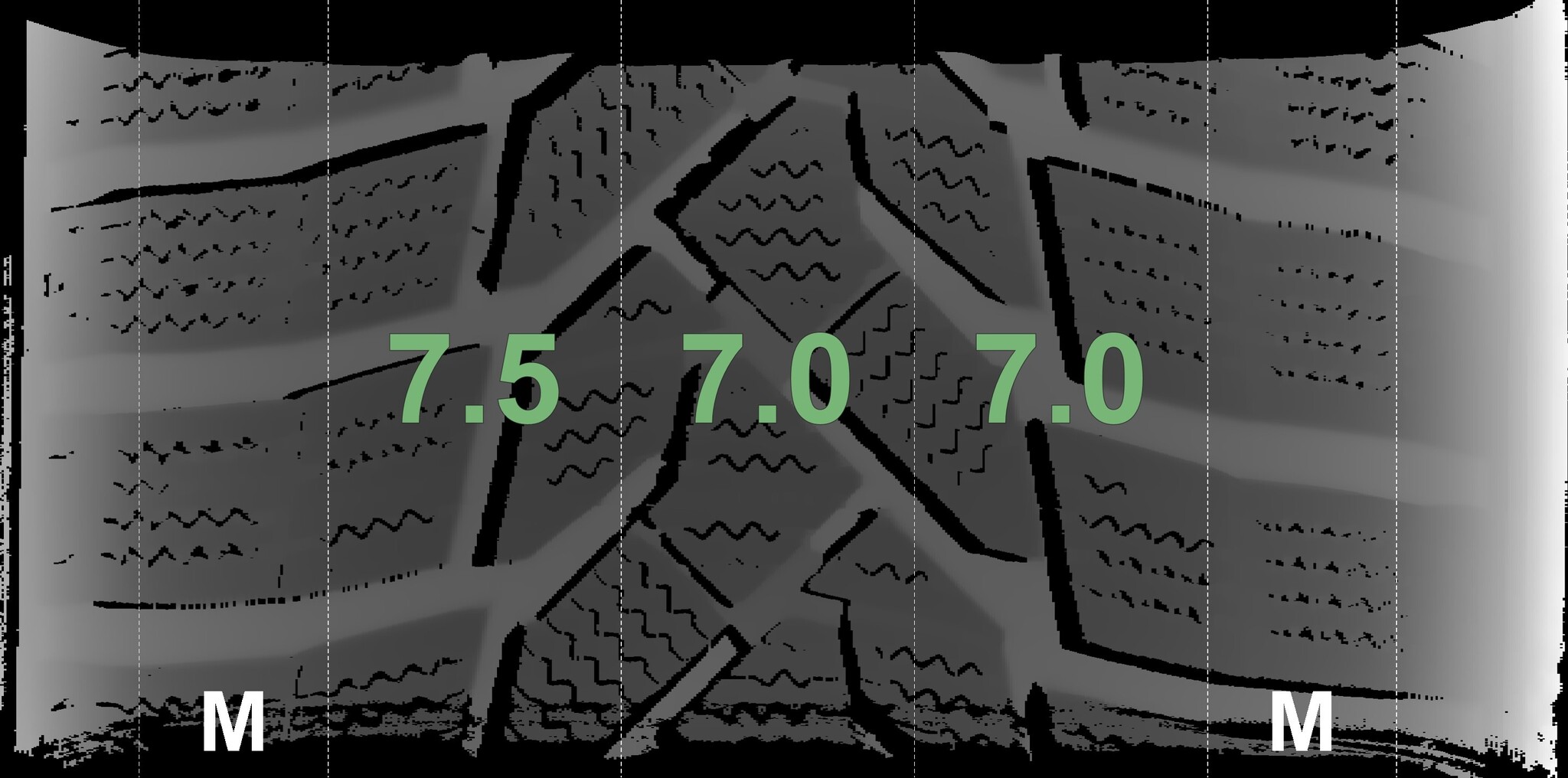 | Condition | Profile depth | DOT | Front Right | Used | 7.7 mm | 1724 |