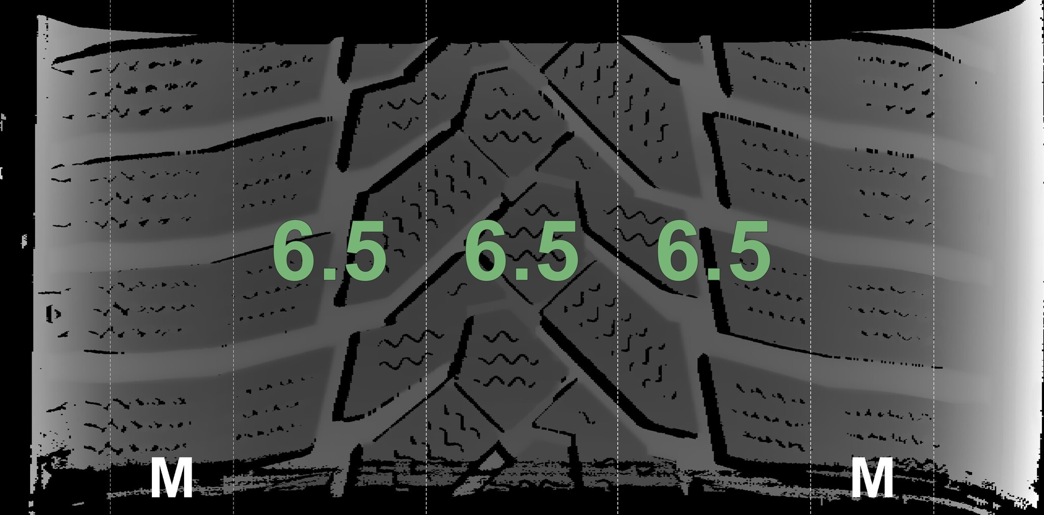 The measured tread depths and the details of the rims are shown above.