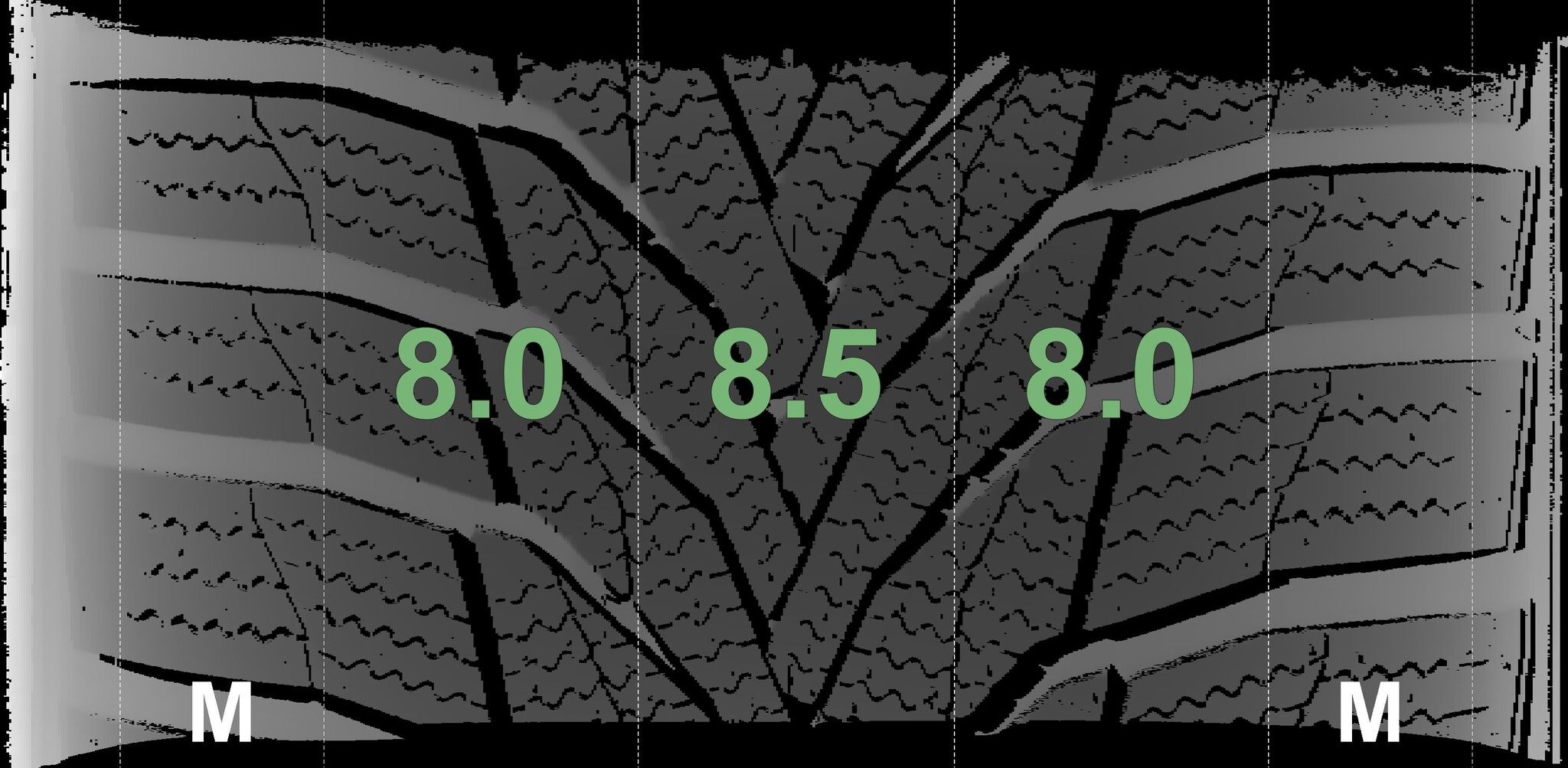 Condition | Profile depth | DOT | Front Right | New | 8.0 mm | 1624 |