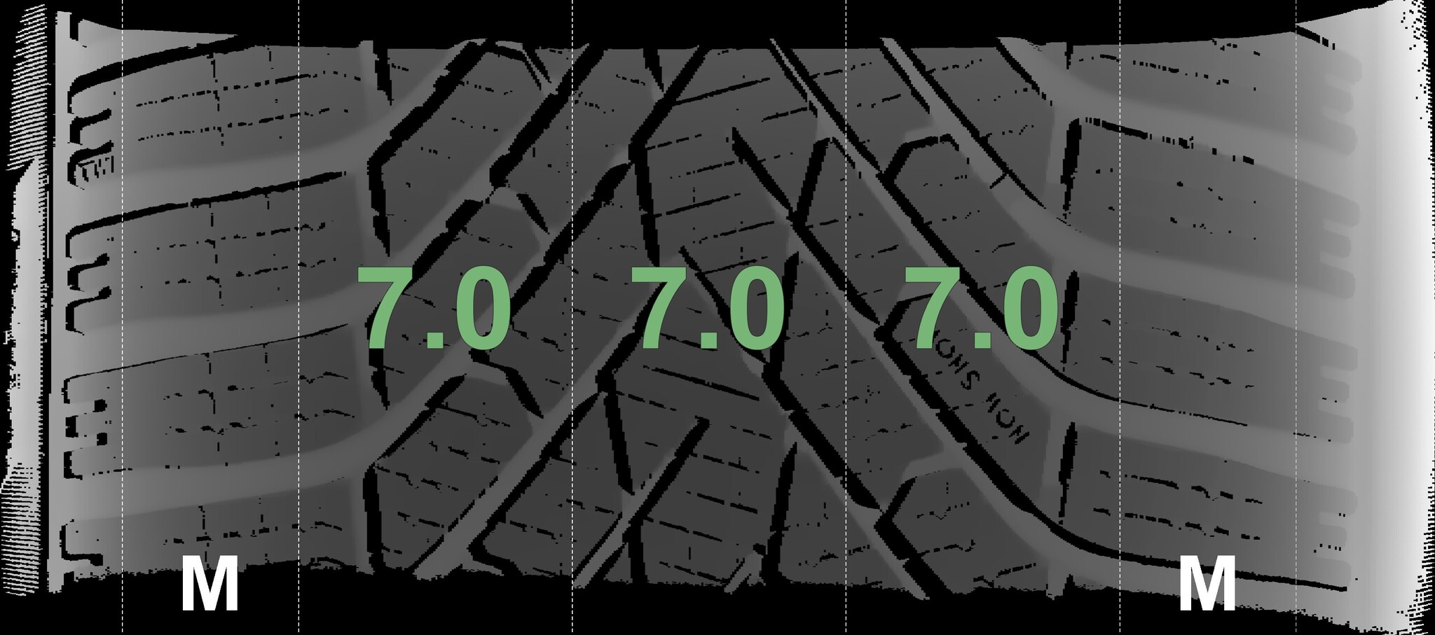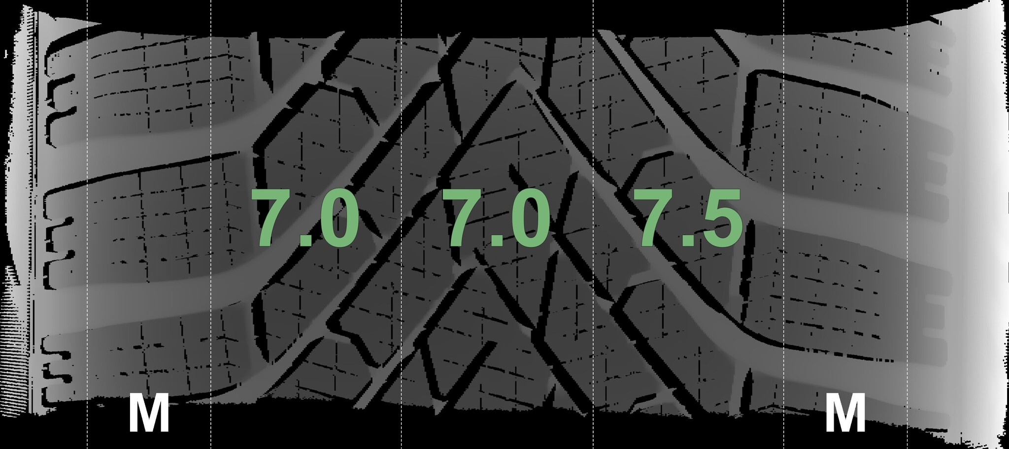 | Condition | Profile depth | DOT | Front Right | Used | 7.2 mm | * |