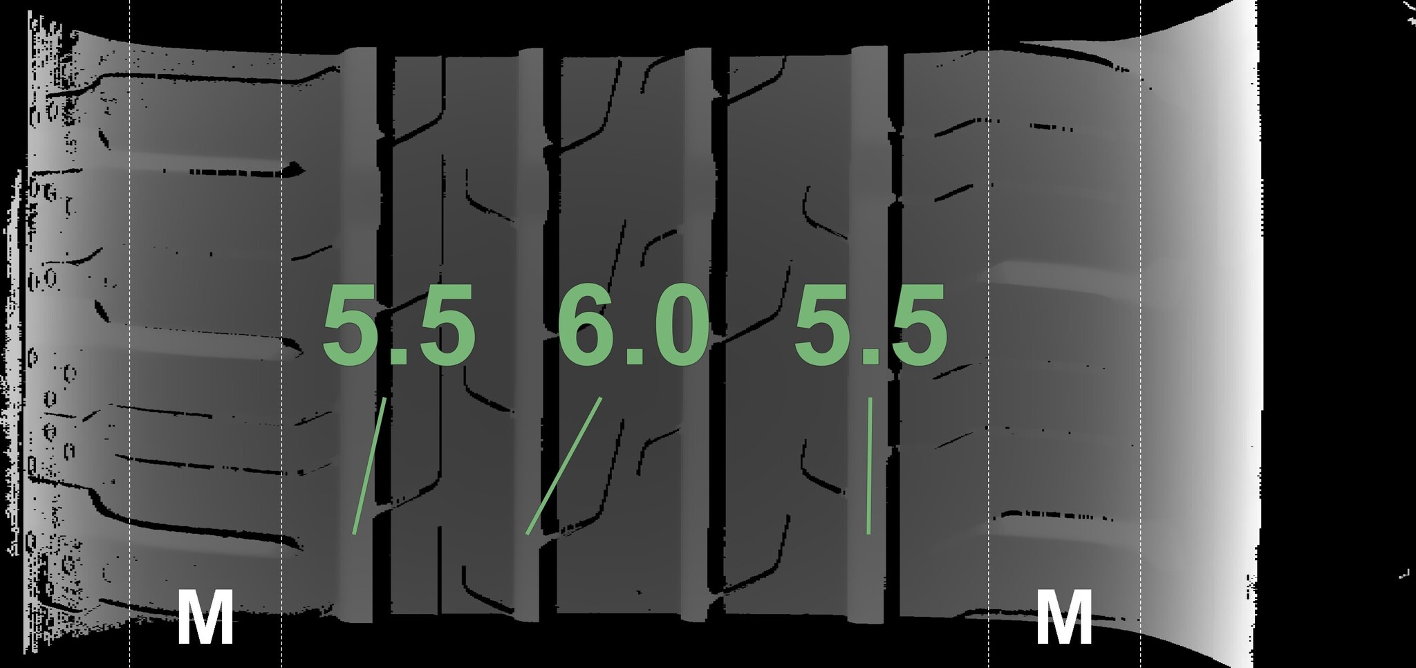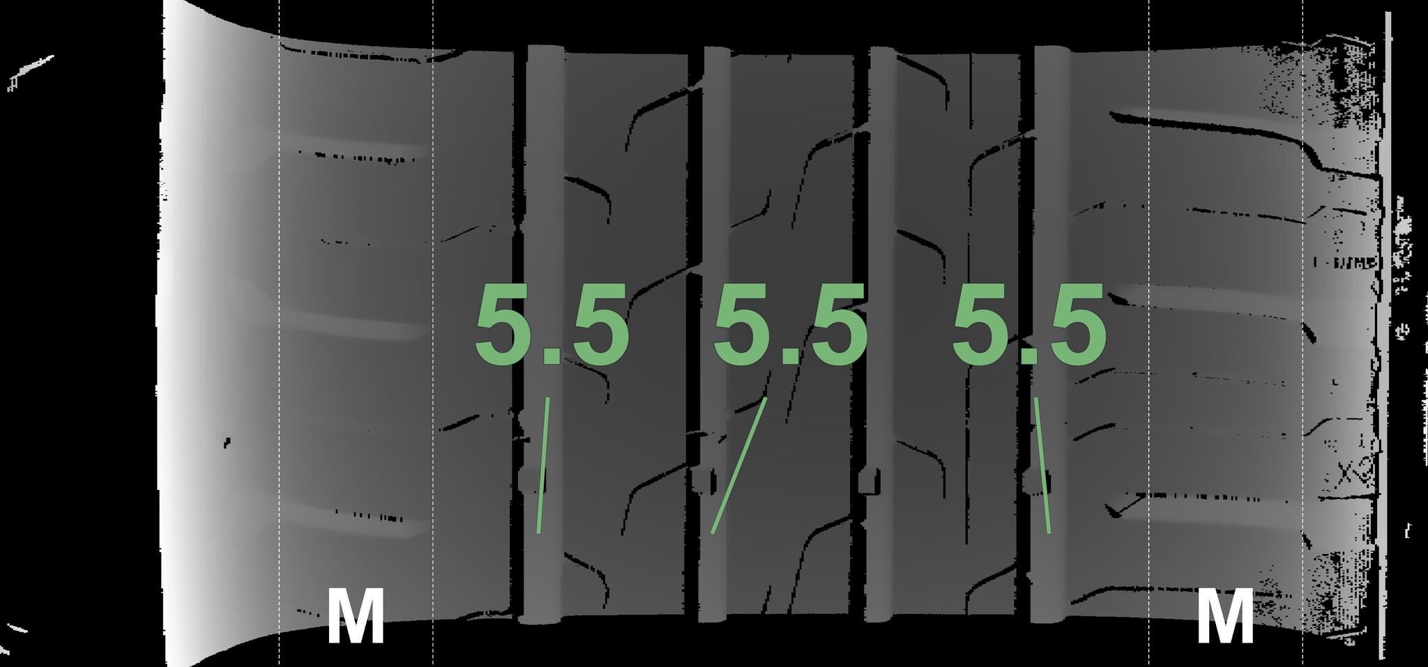 Condition | Profile depth | DOT | Front Left | Used | 5.5 mm | 2821 |