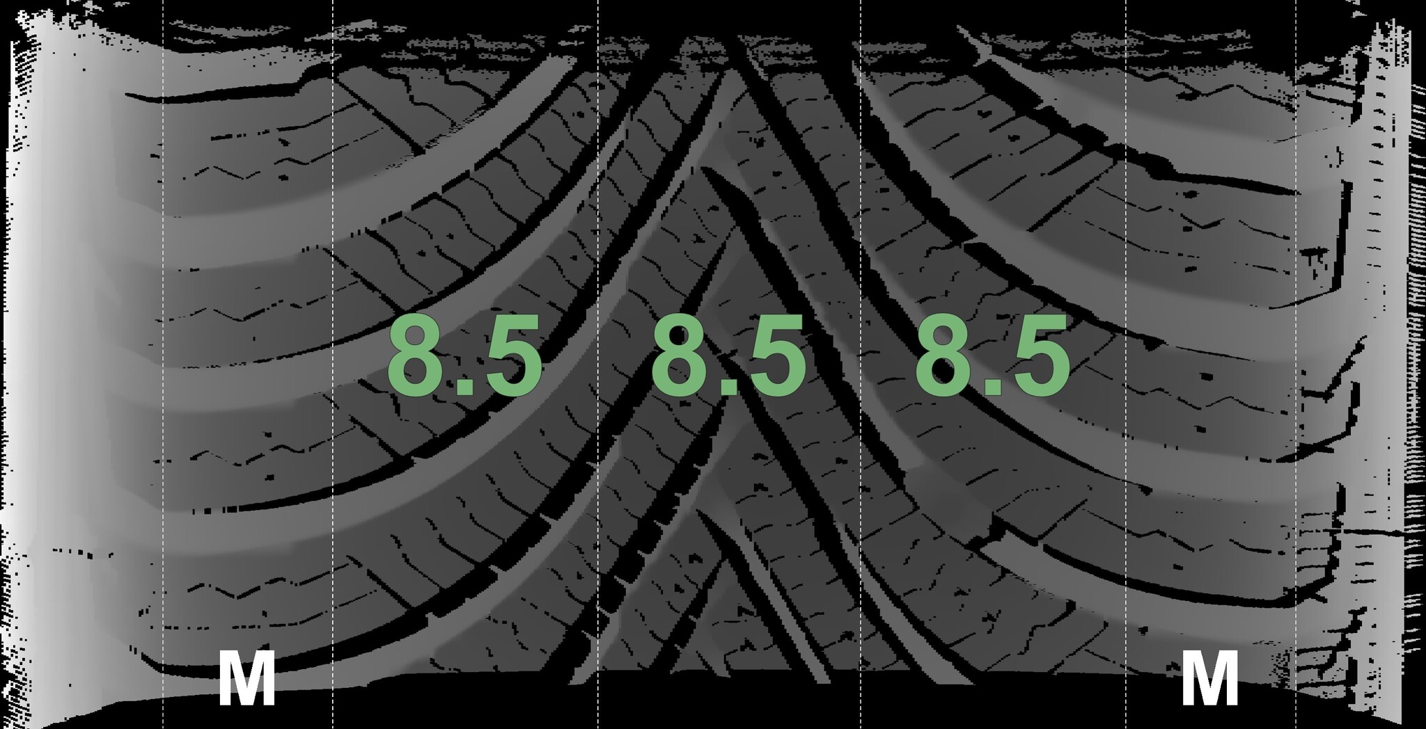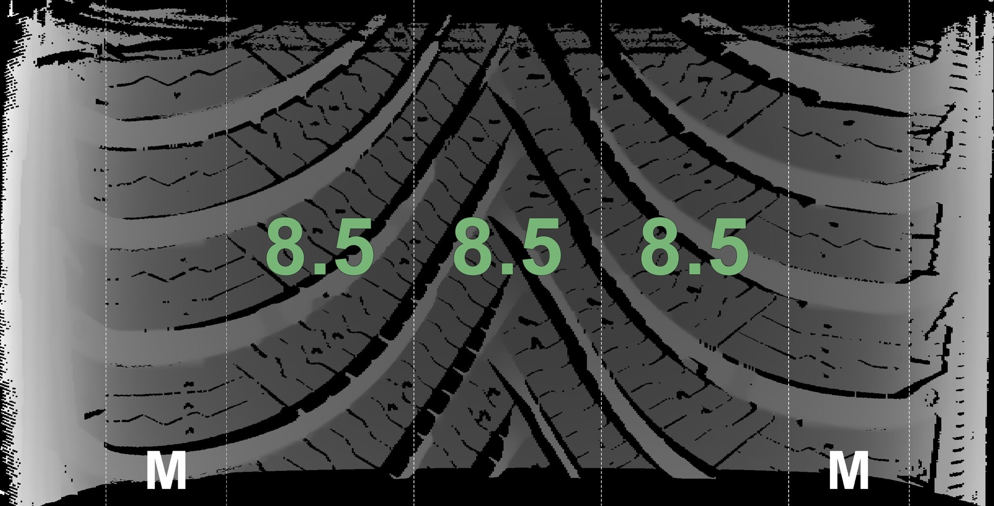 | Condition | Profile depth | DOT | Front Right | New | 8.5 mm | 0125 |