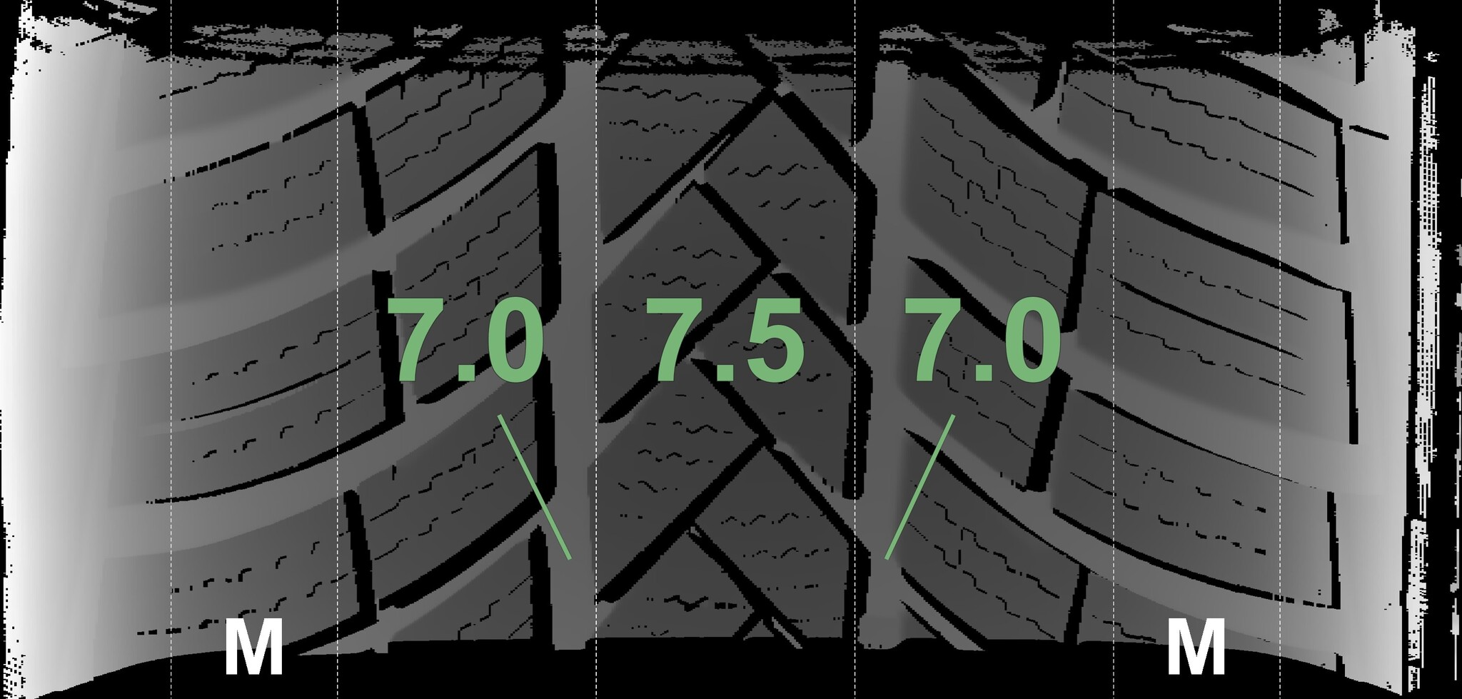 | Condition | Profile depth | DOT | Front Right | Used | 7.2 mm | 4024 |